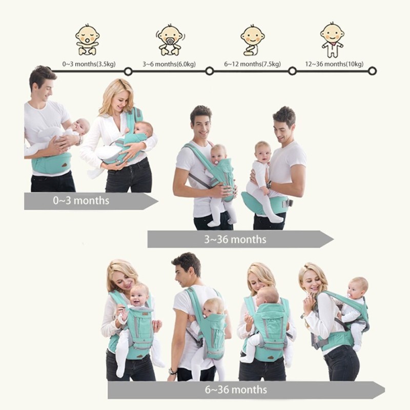 Това кенгуру разполага с 12 различни позиции за носене, което го прави идеален както за пътуване, така и за ежедневна употреба у дома. Поддръжката на лумбалните части осигурява допълнителен комфорт за гърба, а дишащата мрежа позволява използването на кенгуруто през всички сезони.