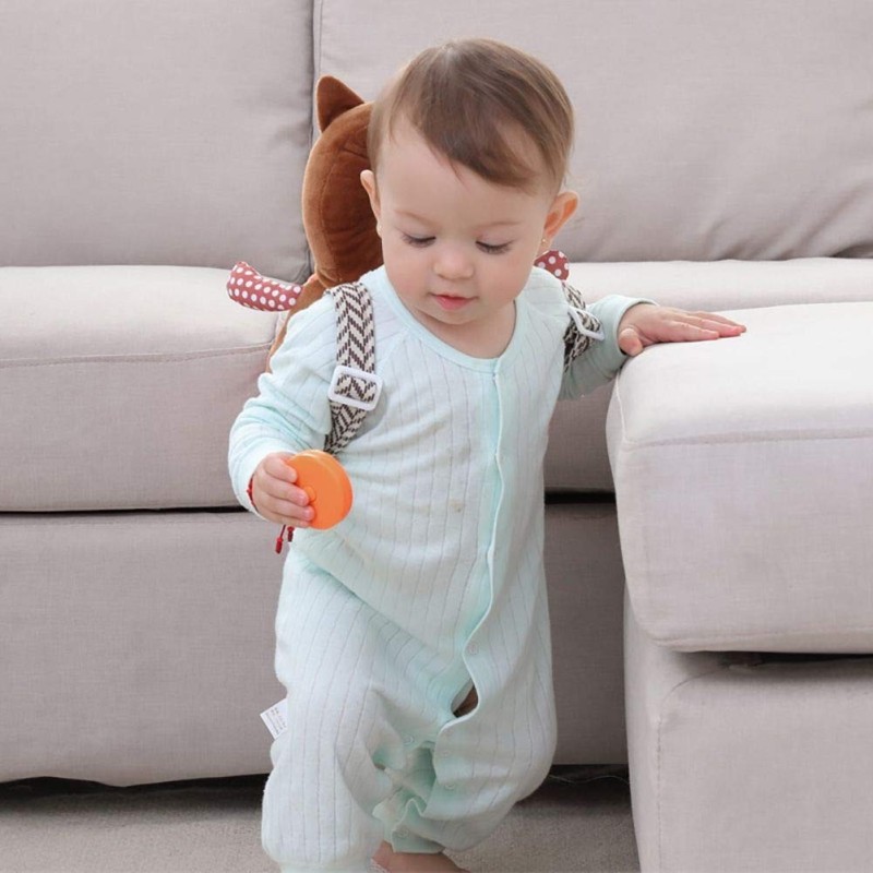 Главната функция на протектора е да предпази главата и врата на децата при падане. Бебетата падат често, когато се учат да вървят, но вече не трябва да е болезнено или вредно! Силиконовият пълнеж на протектора абсорбира удара при падане назад и намалява риска от наранявания. Въпреки това, протекторът е изключително лек и детето почти не усеща неговото присъствие.