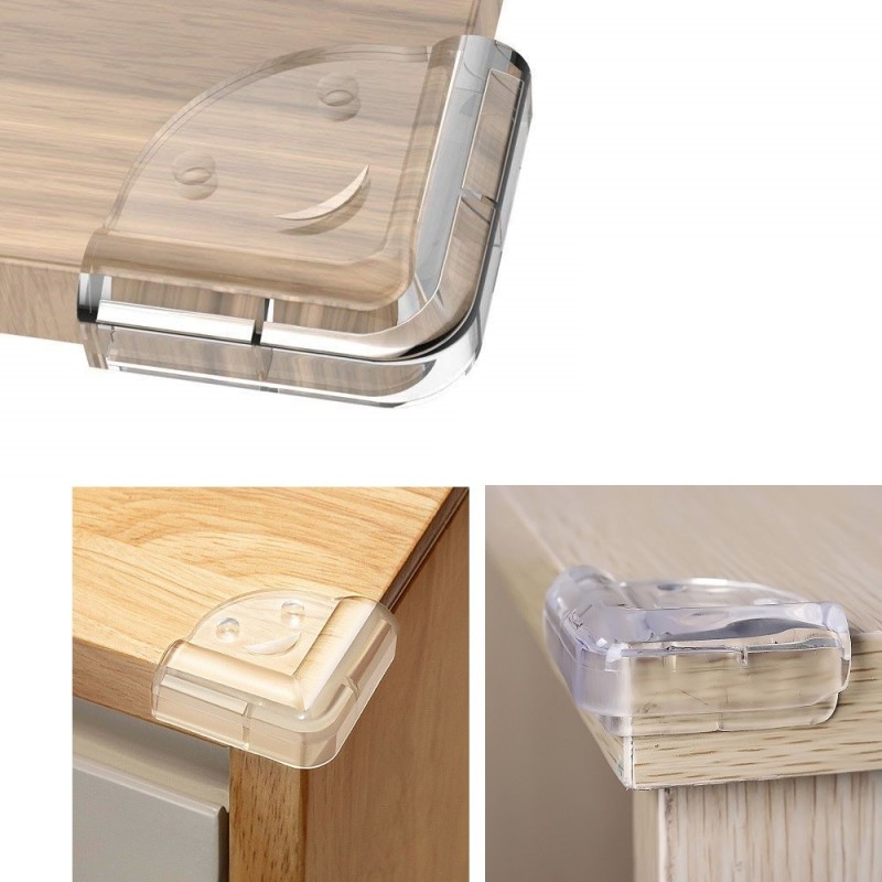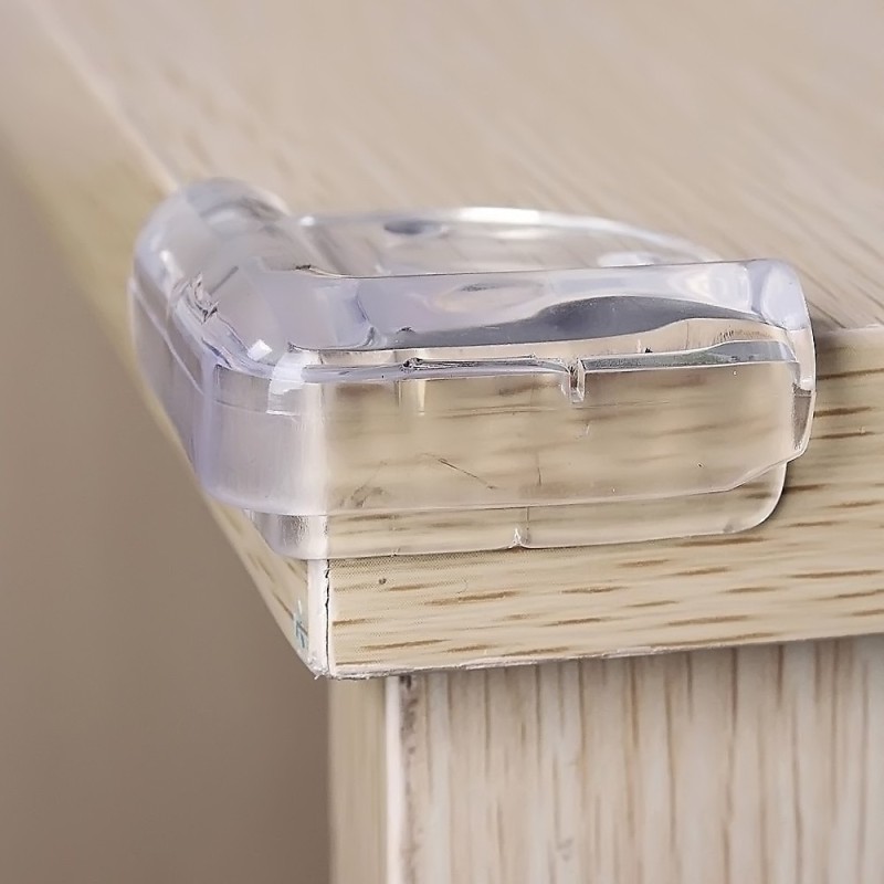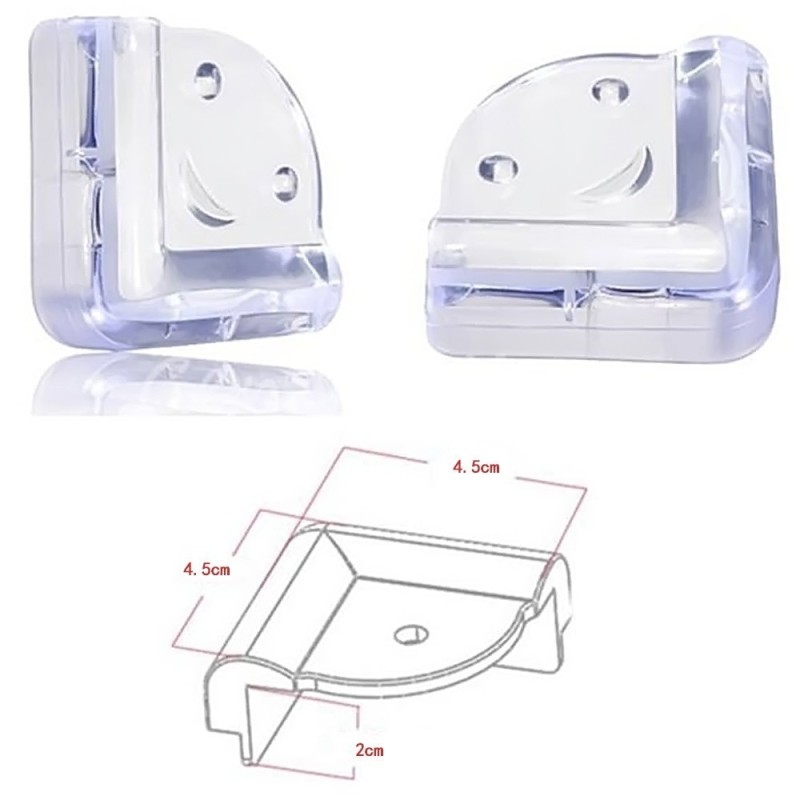 Със своя прозрачен дизайн, тези предпазители се сливат перфектно с всякакъв вид интериор и могат да бъдат поставени на холната маса, шкафове или первази. Подходящи са за повърхности с ъгъл от 90 градуса и имат размери 4.3 х 2 см.