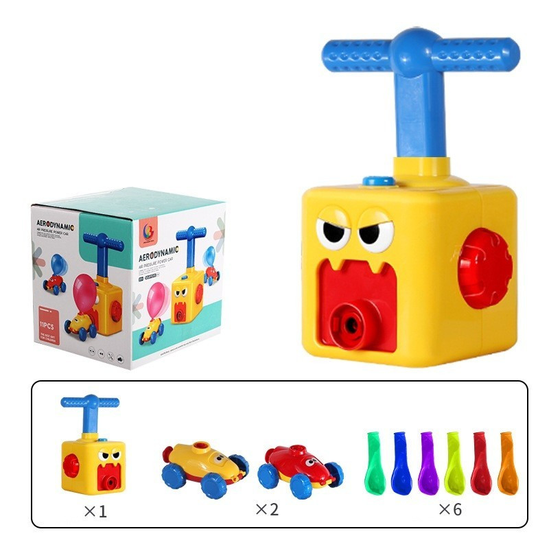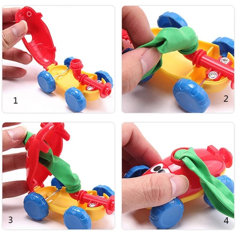 Играчката за изстрелване на колички с балони е забавна и развлекателна игра, която ще запалва въображението на вашето дете. Тази детска игра предлага вълнуващо състезание с колички, които се задвижват посредством аеродинамичен принцип. Добавете въздух в балоните, поставете ги на количките и ги изстреляйте във въздуха. След това, гледайте как количките се движат с висока скорост и правят забавни и непредсказуеми маневри.