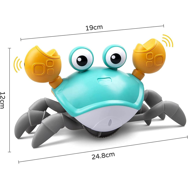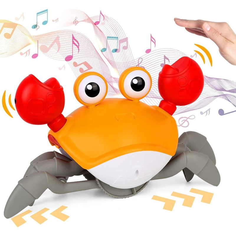 Кроули има интересна музика и меки светлинни ефекти, когато пълзи, което ще помогне за подобряване на концентрацията и интереса на децата и ще им даде различно преживяване при игра. Също така е добро забавление за косматите ви приятели. Детската играчка ходещ рак ще започне да пълзи с весели песни, а когато срещне препятствие, докато се движи, ще започне да се движи в обратната посока, бебетата обичат да го гонят или пълзят след него.