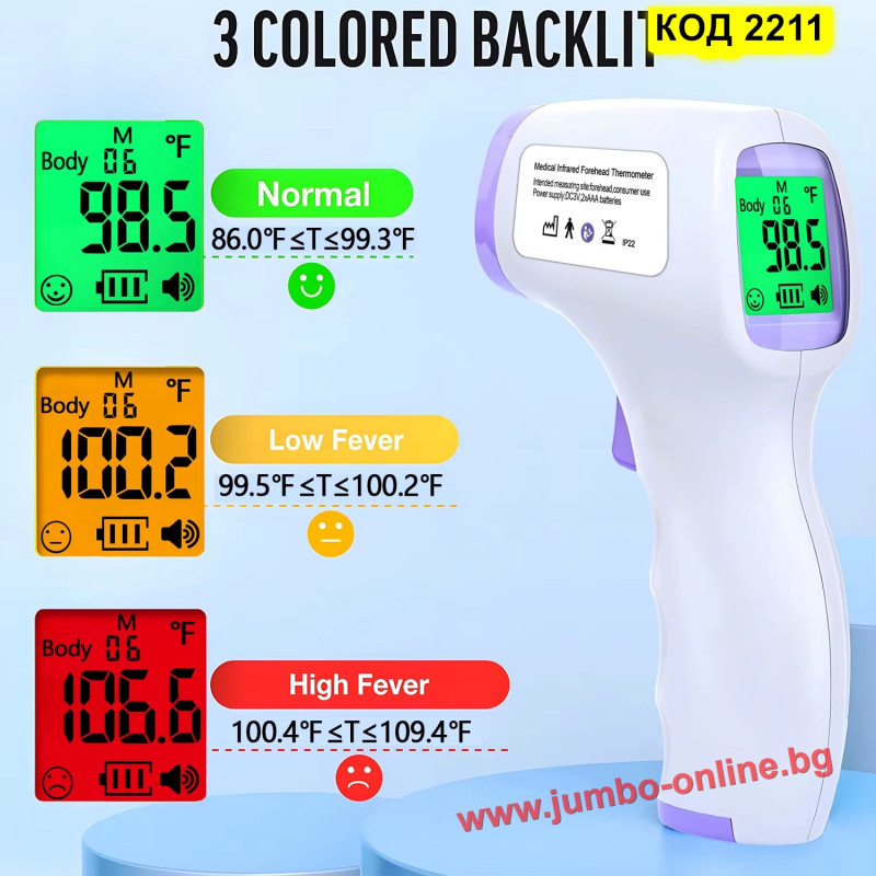 Представяме ви инфрачервен безконтактен термометър за деца с професионална прецизност и удобен дизайн. Без необходимост от контакт с кожата, измерването се извършва бързо и хигиенично – перфектно за неспокойни малчугани. Технологията на инфрачервения сензор гарантира надеждни резултати, а звуковата и визуалната индикация правят отчитането ясно и без грешка. Устройството е снабдено с памет за последните 35 измервания, което ви позволява лесно да проследявате развитието на температурата. Компактният и лек корпус го прави удобен за носене в дамска чанта или раница при пътуване. Изберете този термометър за бързо, точно и безстресово измерване на температурата, фокусирано върху комфорта както на децата, така и на родителите.