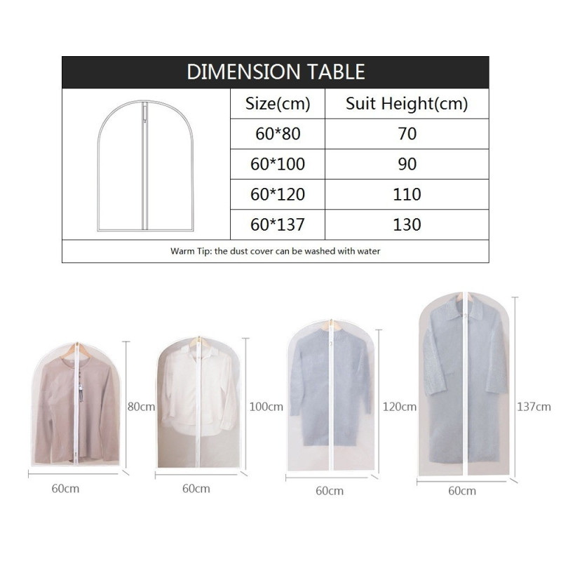 Тези бели калъфи за дрехи се предлагат в 3 различни размера, за да отговарят на вашия индивидуален нужди и предпочитания. Първият размер е 80 х 60 см и е подходящ за съхранение на дрехи с височина до 70 см. Вторият размер е 100 х 60 см, който е идеален за дрехи с височина до 90 см. Най-големият размер е 120 х 60 см и е предназначен за дрехи с височина до 110 см.