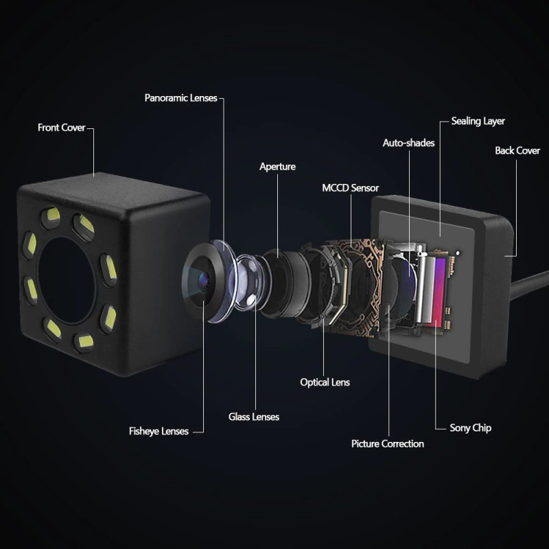 Камерата за задно виждане е снабдена с 8 LED диода за нощно виждане, които осигуряват ясна и детайлна видимост, дори при най-лоши светлинни условия. Това ви дава възможност да паркирате и маневрирате в тъмни и затруднени места, без да се притеснявате за гръбнака на автомобила си.