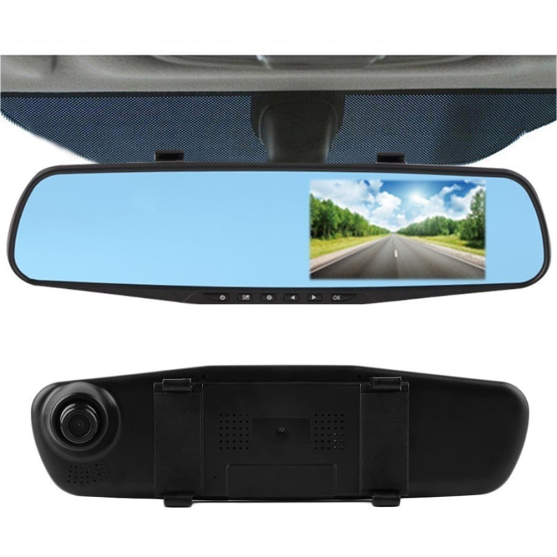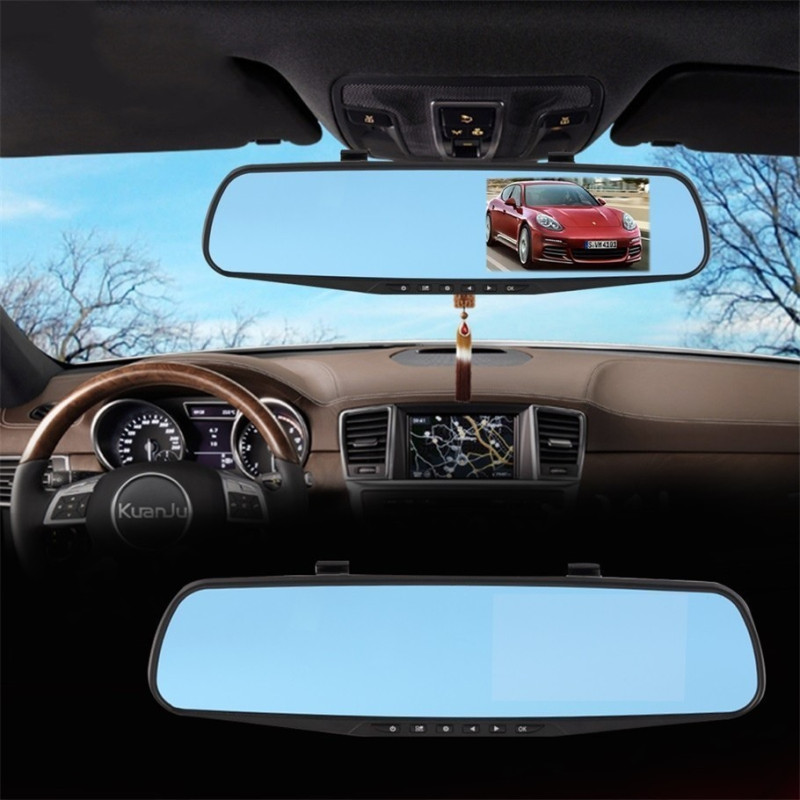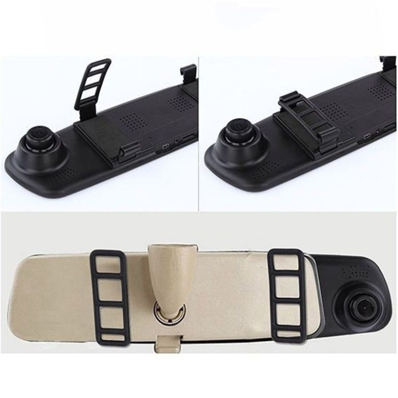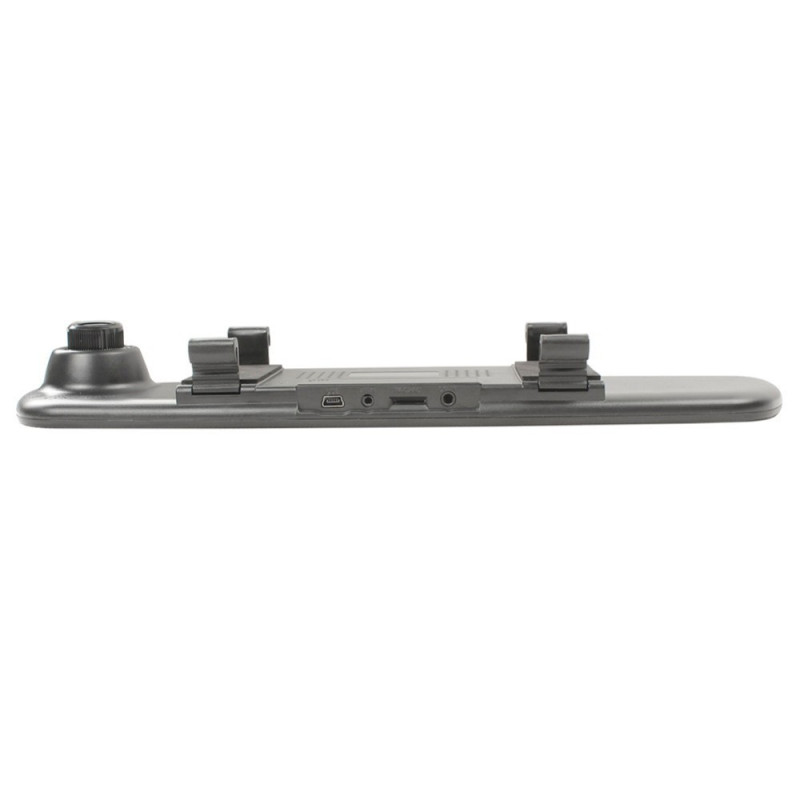 Комплектът включва видеорегистратор в огледало с 4.7-инчов монитор, камера за задно виждане, зарядно, AV кабел, меки скоби и винт. Монтажът и използването на това устройство са изключително лесни. Просто го поставете на предното стъкло (в/у огледалото) и го свържете към запалката.