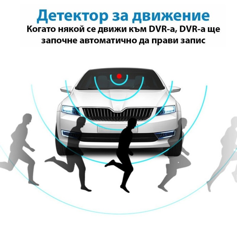 С вградения си G-сензор, този видеорегистратор открива инциденти и автоматично спира записването, за да защити вашите данни. Той също така разполага с детектор за движение и записване, който ви предупреждава и записва всяко движение около вашия автомобил.