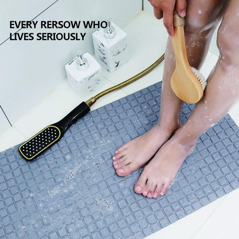 "Спрете с хлъзгането в банята с тази стилна и практична гумена постелка с вендузи! Изработена от висококачествен пвц материал, тази постелка е перфектното допълнение към всяка баня, душ кабина или вана. Снабдена с малки вендузи, тя залепва здраво към пода, осигурявайки ви стабилност и безопасност при влизане и излизане от ваната. Но не само това - релефните стъпки върху постелката предоставят и приятен масаж на стъпалата ви, за да се почувствате свежи и релаксирани след вана. И най-доброто е, че тази постелка е изключително лесна за поддръжка - просто я поставете на пода и няма нужда да се притеснявате за пране или запазване на цветовете й. Забравете за хлъзгането и се насладете на безопасността и комфорта, предоставени от тази гумена постелка за баня!"