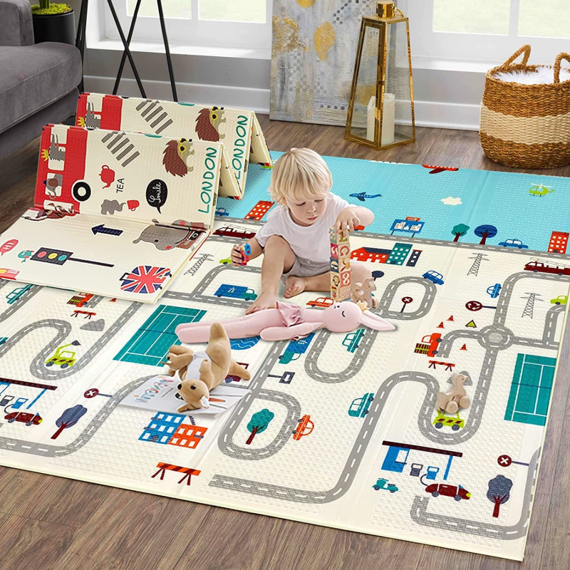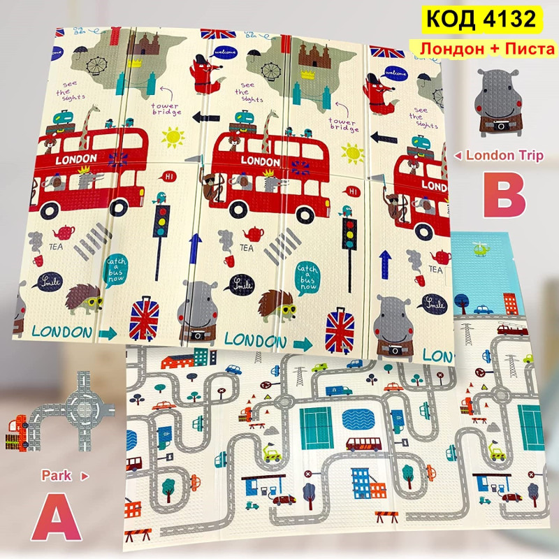 Сгъваемо детско килимче за игра, топлоизолиращо 180x200х1см - модел Лондон и Писта