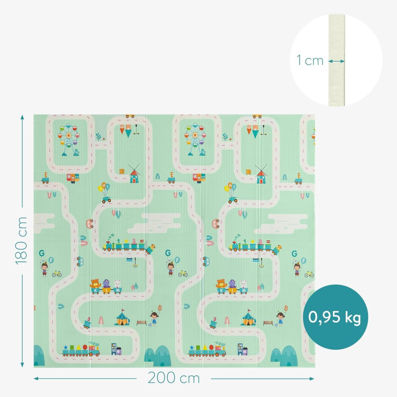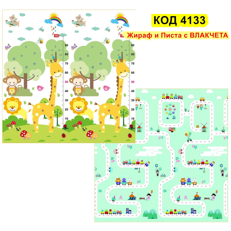 Сгъваемо детско килимче за игра, топлоизолиращо 180x200x1cm - Жираф и Писта с ВЛАКЧЕТА