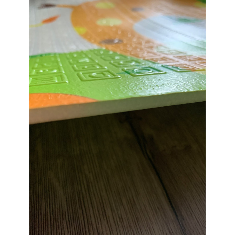 Релефната повърхност предпазва от подхлъзване и в същото време стимулира фината моторика на децата. Цветните принтове стимулират зрението и въображението.