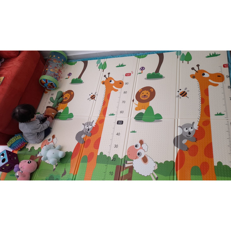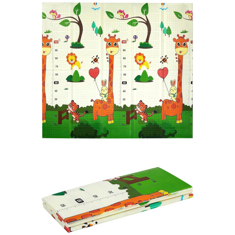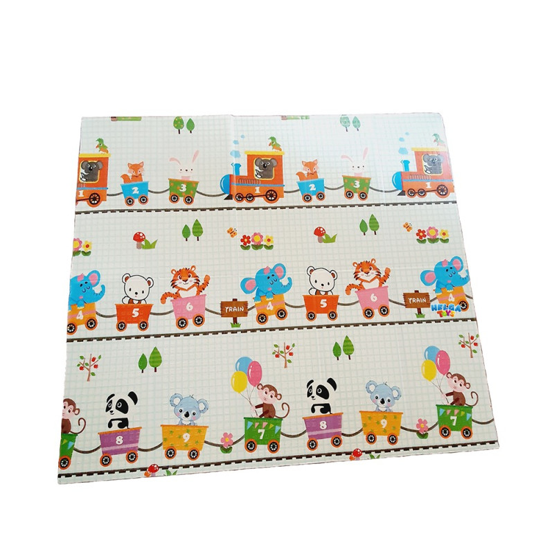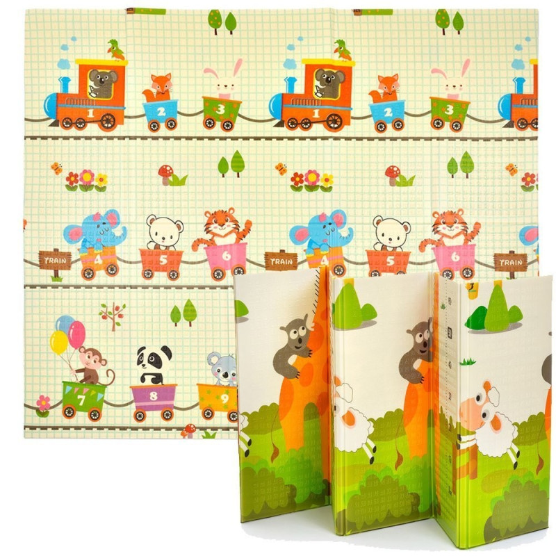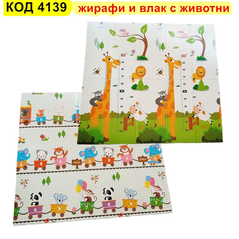 Сгъваемо детско килимче за игра, топлоизолиращо 180x200x1cm - модел жираф и влак с животни