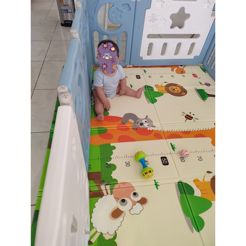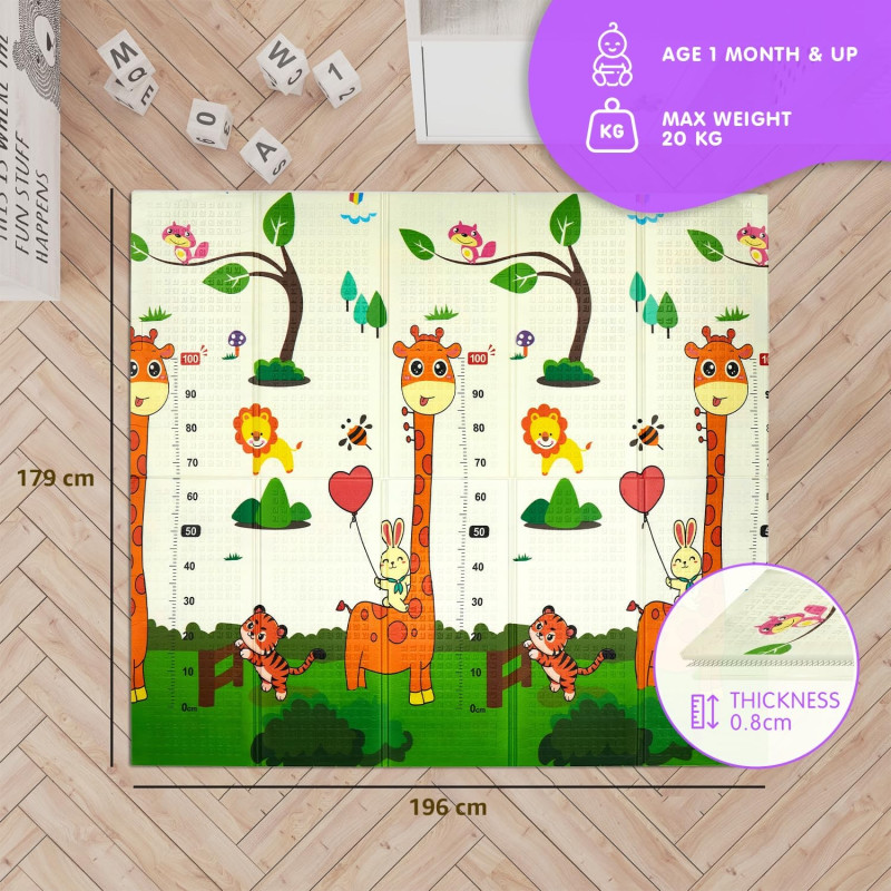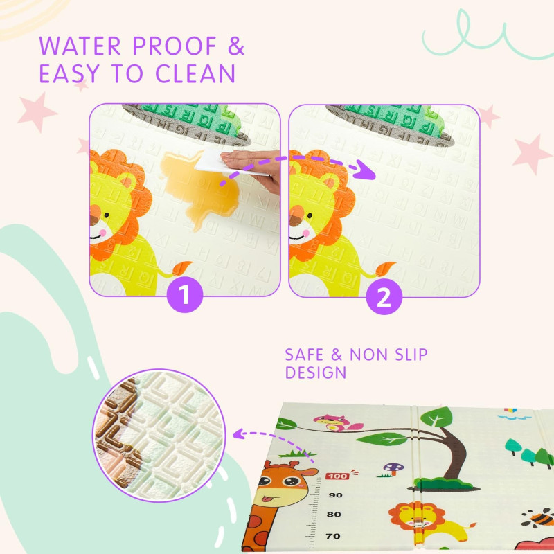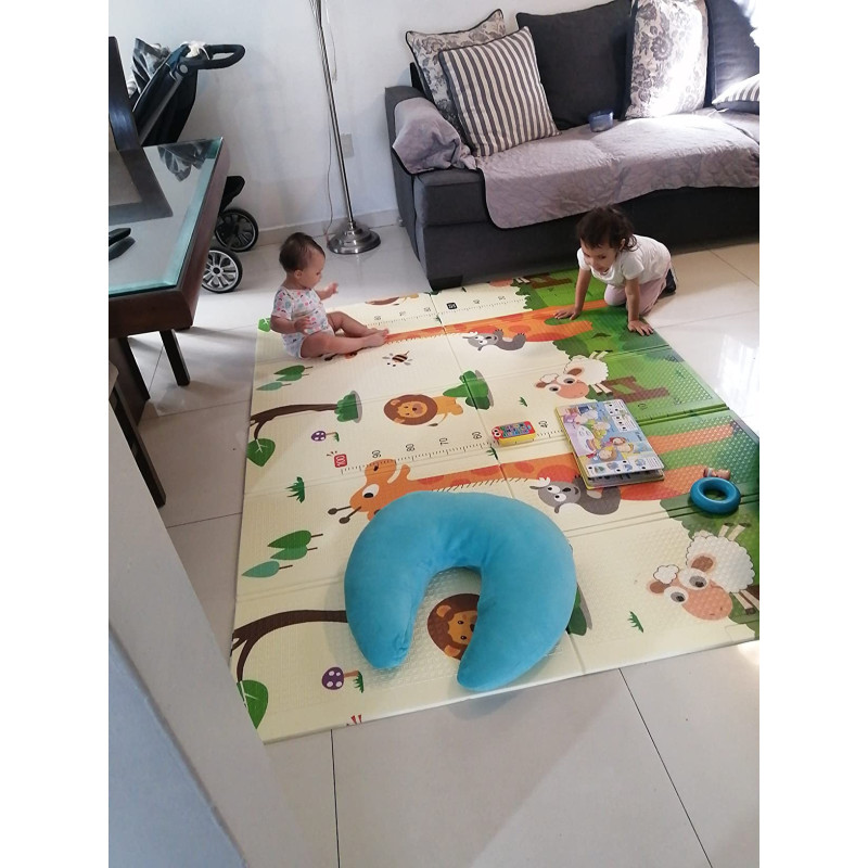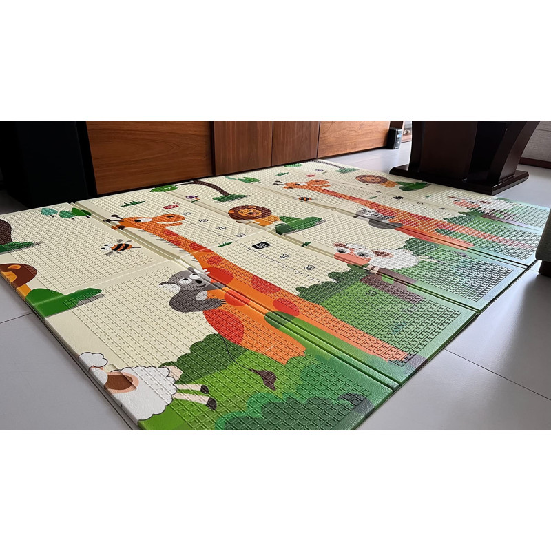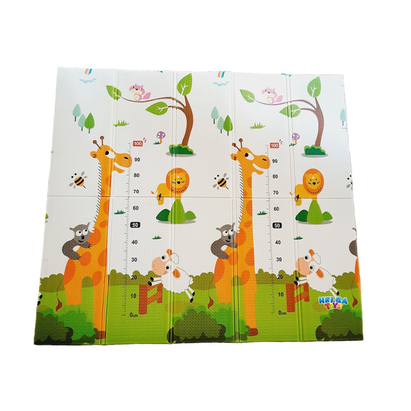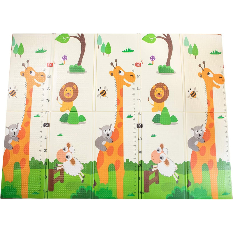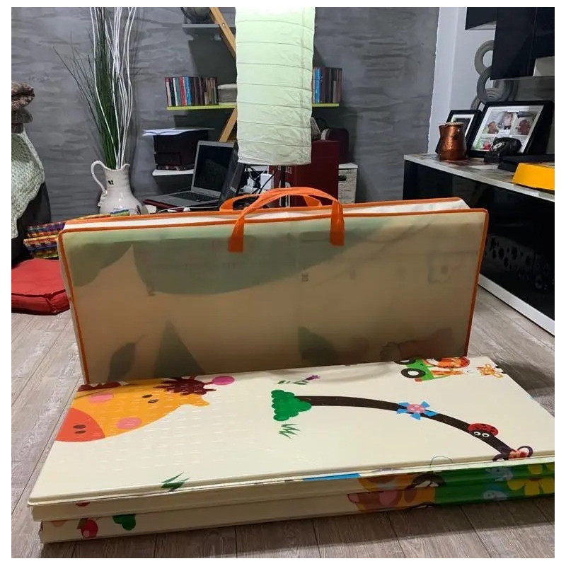 Двустранно, сгъваемо килимче за пълзене и игра от XPE пяна. Материалът, от който е изработено килимчето е нетоксичен и напълно безопасен, което го прави подходящ за употреба от деца, дори и в най-ранна възраст.
