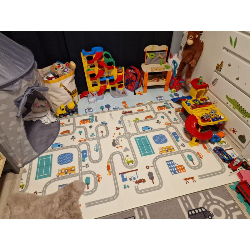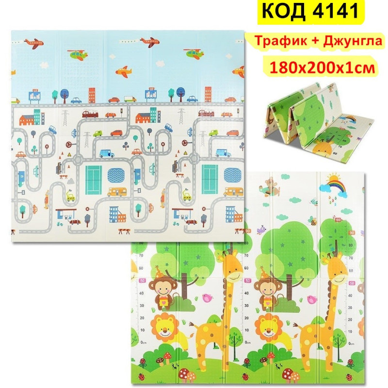 Сгъваемо детско килимче за игра, топлоизолиращо 180x200x1cm - модел Трафик + Джунгла