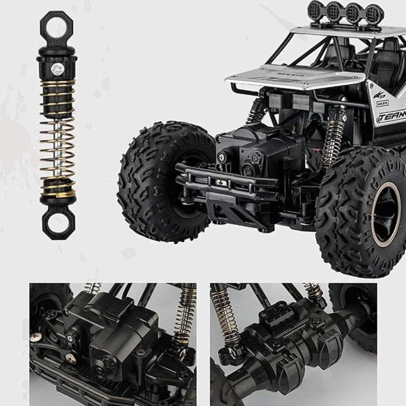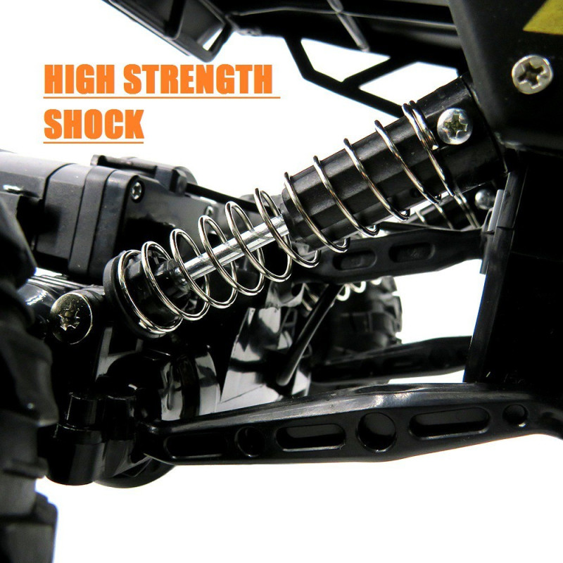 Всеки един детайл в дизайна на джипа е напълно функционален - амортесьори, които обират подскоци при движение, светлини на покрива и масивни гуми с големи грайфери, които превръщат всеки терен в лесно проходим. Той е подходящ за каране на земни, тревни и пясъчни повърхности, а освен това разполага с цели два мотора за плавно и бързо движение - преден и заден. Освен това с радиоуправляемата джипка можете спокойно да изкачвате и наклонени повърхности до 45 градуса. Притежанието на този офроуд “monster truck” ще превърне разходките в природата и семейния пикник в неописуемо забавление.