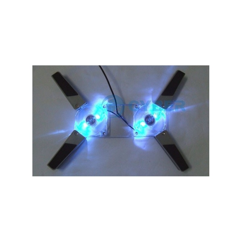 Скоростта на въртене на вентилаторите е 2500 оборота в минута, а максималното ниво на шум е само 25 децибела, което гарантира тиха и безпроблемна работа. Светещата синя LED светлина добавя допълнителен акцент към модерния дизайн на подложката.