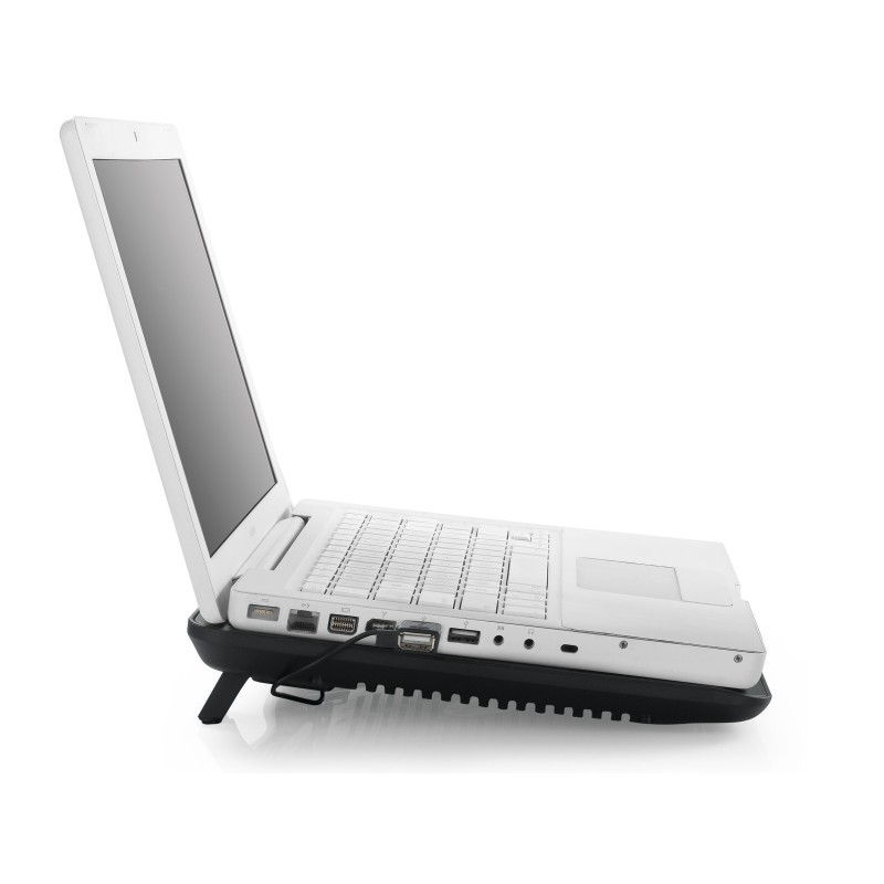 Нашата подложка за лаптоп има стилен и здрав метален капак на решетката, който гарантира ефективна циркулация на въздуха. Благодарение на големия брой въздушни прорези, топлият въздух се изпуска оптимално от лаптопа, като го предпазва от нежелано прегряване.