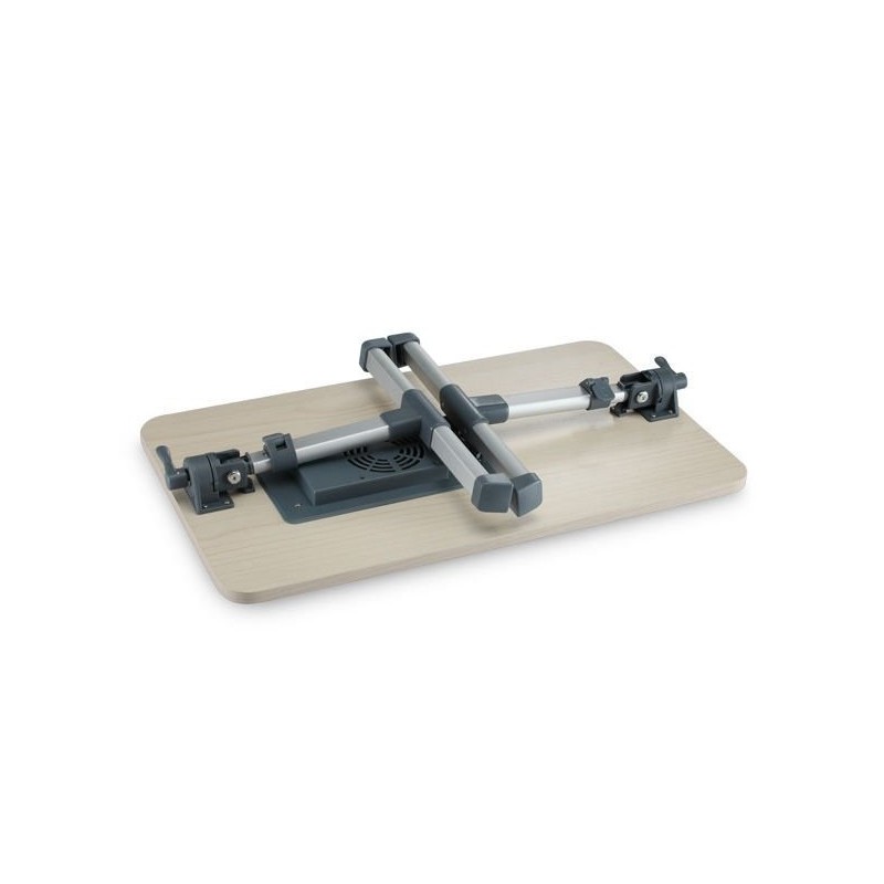Иновативните алуминиеви крачета на масичката осигуряват стабилност и дълготрайност. Те са леки, но здрави, което ги прави перфектни за употреба в леглото. Охладителят, вграден в масичката, има скорост от 1900 оборота в минута и осигурява ефективно охлаждане на вашия лаптоп. Той се захранва от USB с напрежение DC 5V 250mA, което е максимално удобно за използване.