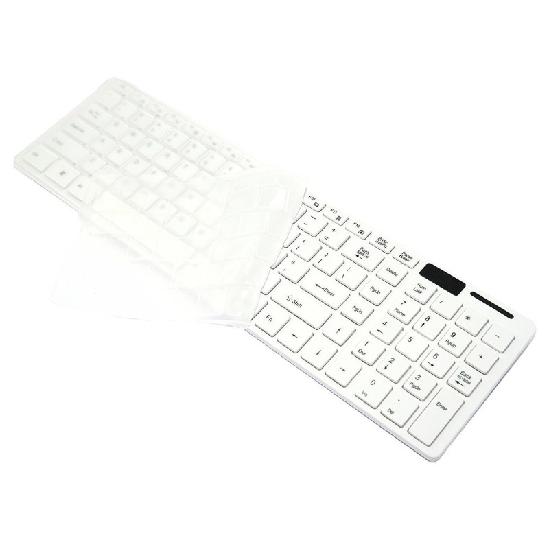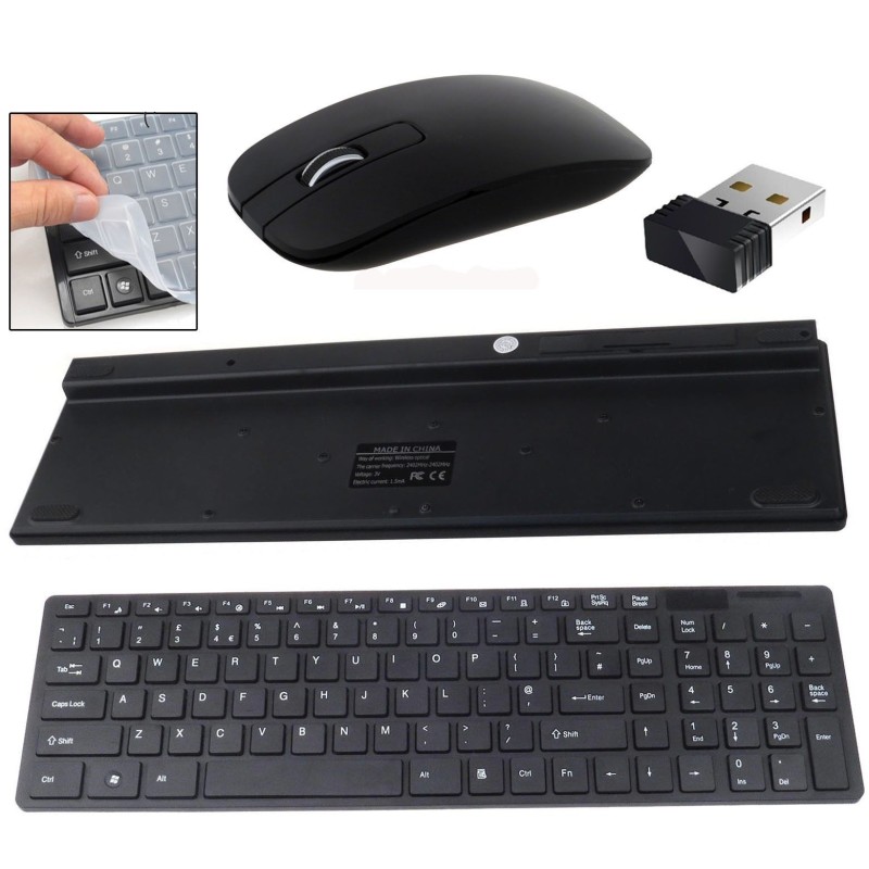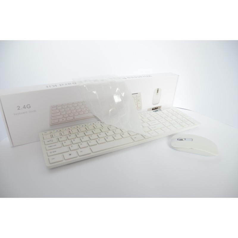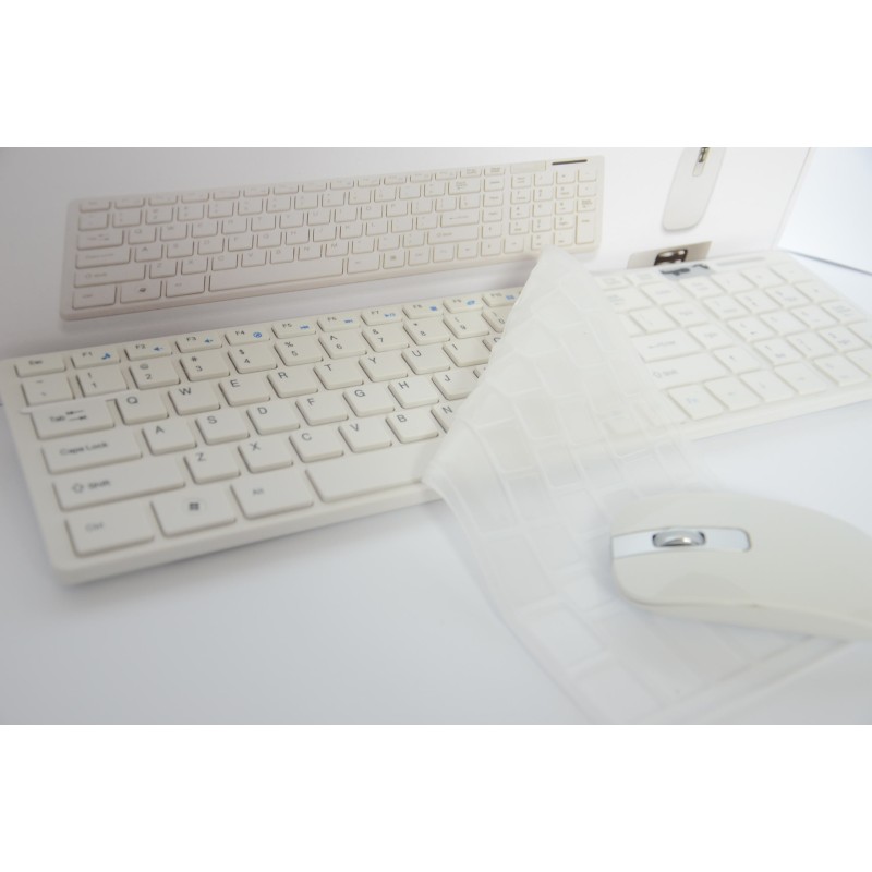 Комплектът включва една клавиатура-слим, една компютърна безжична мишка и силиконово покритие за клавиатурата. Това покритие осигурява защита от прах и износване и ви позволява да запазите клавиатурата си в перфектно състояние за дълго време.