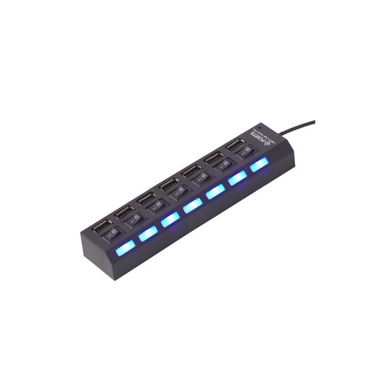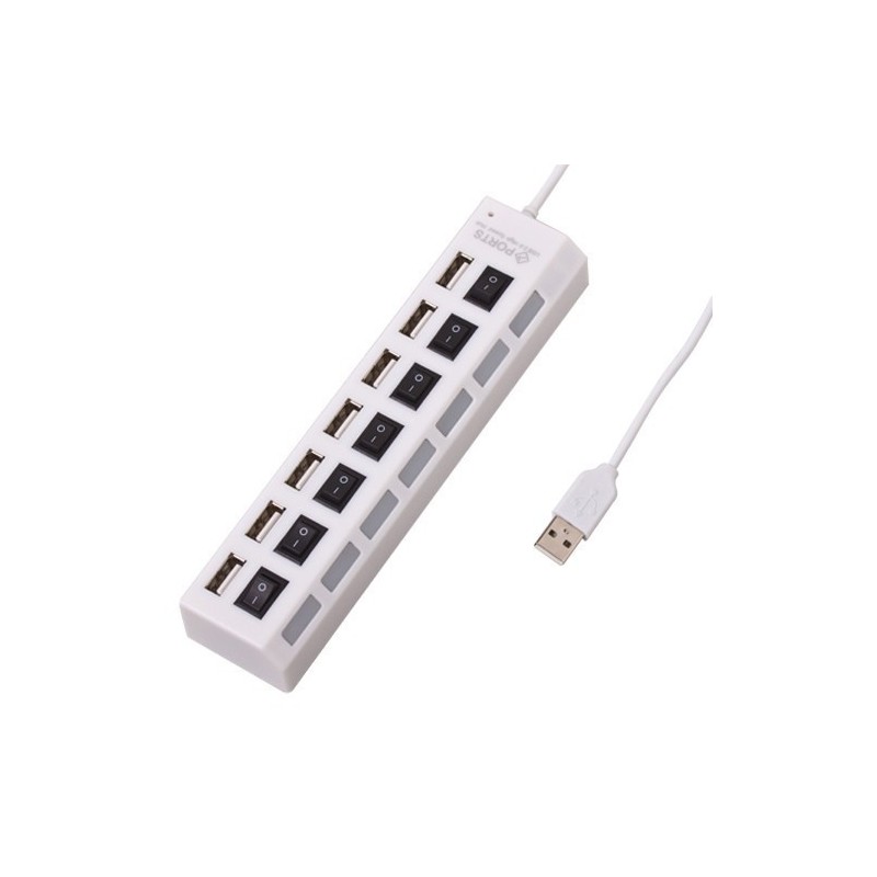 USB HUB РАЗКЛОНИТЕЛ СЪС 7 ПОРТА И ИНДИВИДУАЛНИ КЛЮЧОВЕ, ДО 480MBPS