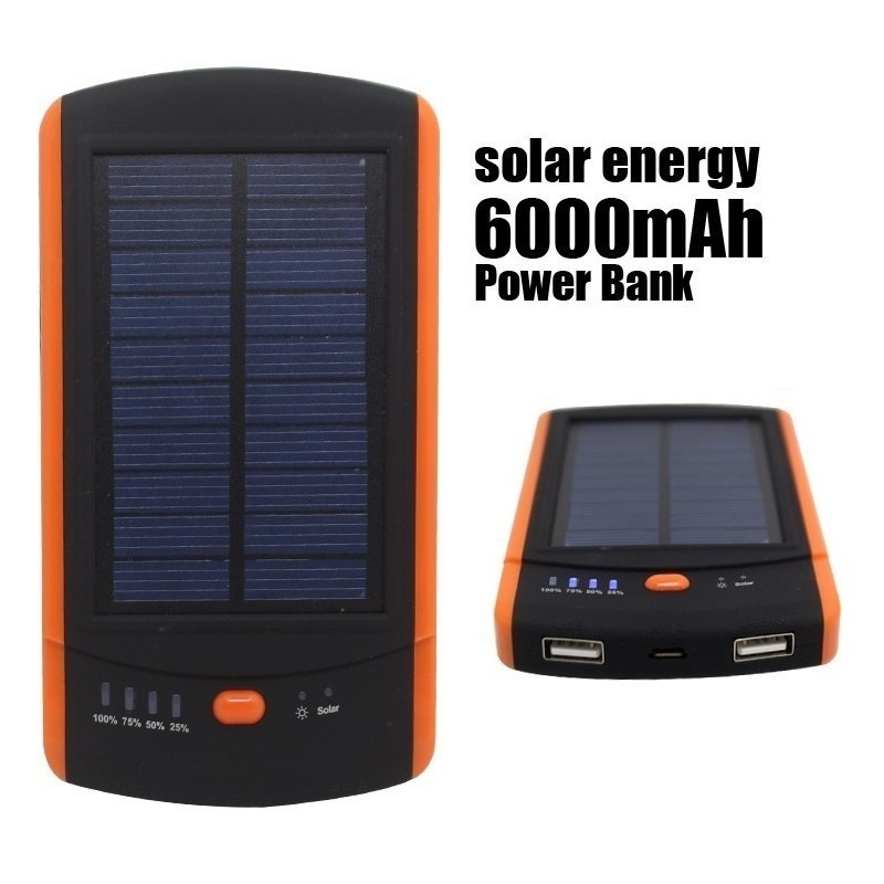 Представяме ви външна соларна батерия /power bank/ с капацитет от 6000mAh. Това преносимо зарядно устройство е идеално за зареждане на всякакви мобилни устройства като GSM, GPS, iPhone, iPad, MP4 и други.