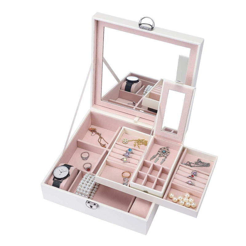 Кутия за бижута с 2 нива и голямо огледало, БЯЛА - код 1755