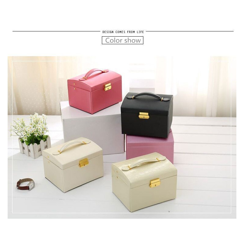 Кутията за бижута има дръжка, която Ви позволява да я поставите или да я вземете със себе си на всяко пътуване. Кутията има огледало вътре, което е много практично, когато пътувате.