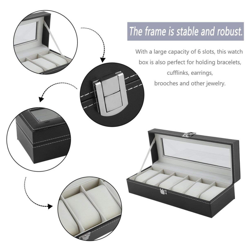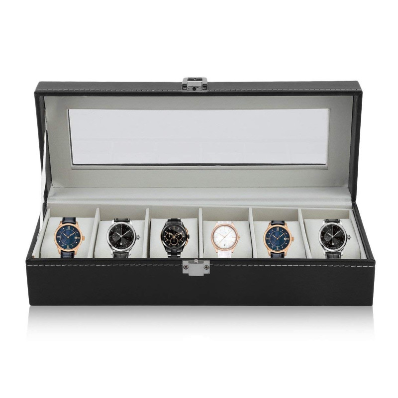 Кутията за часовници е много красив и универсален подарък за мъж, защото както всички знаем хубавият часовник показва стила и класата на мъжа. Кожената кутия е изработена от изкуствена кожа с гнезда за съхранение на шест часовника.