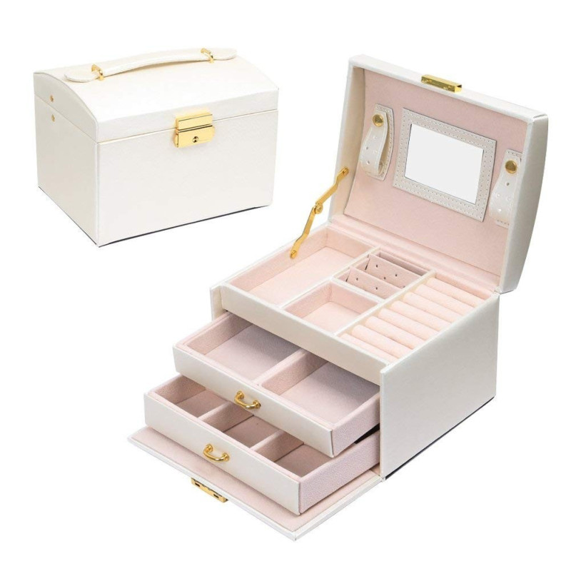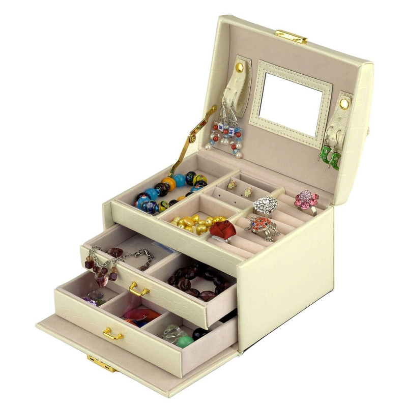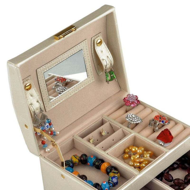 Кутията за бижута има дръжка, която Ви позволява да я поставите или да я вземете със себе си на всяко пътуване. Кутията има огледало вътре, което е много практично, когато пътувате.