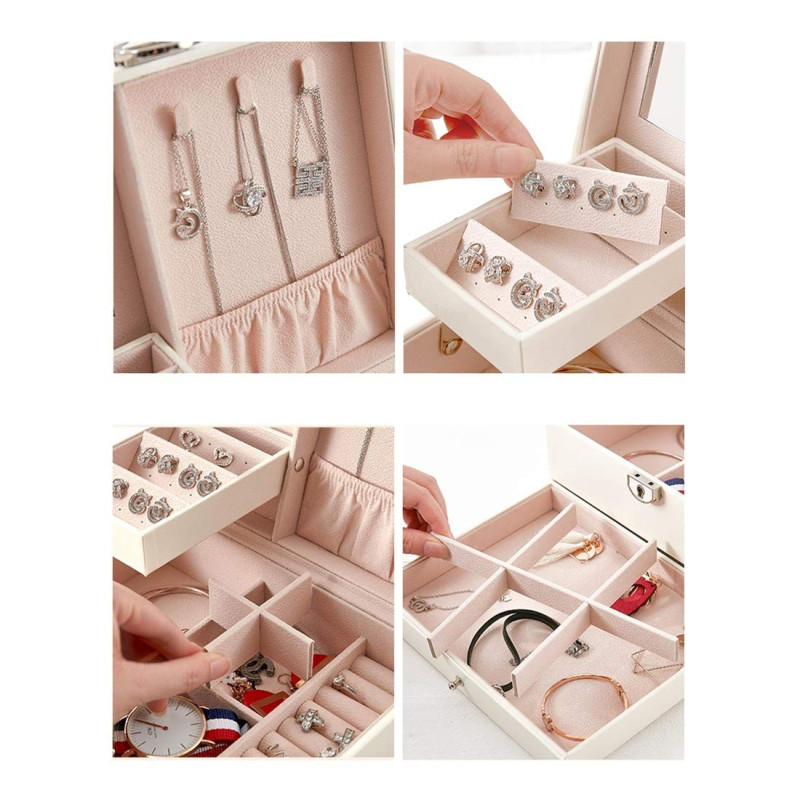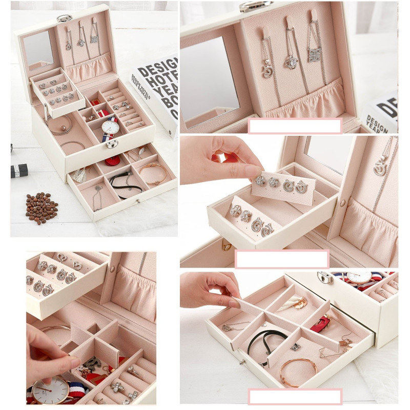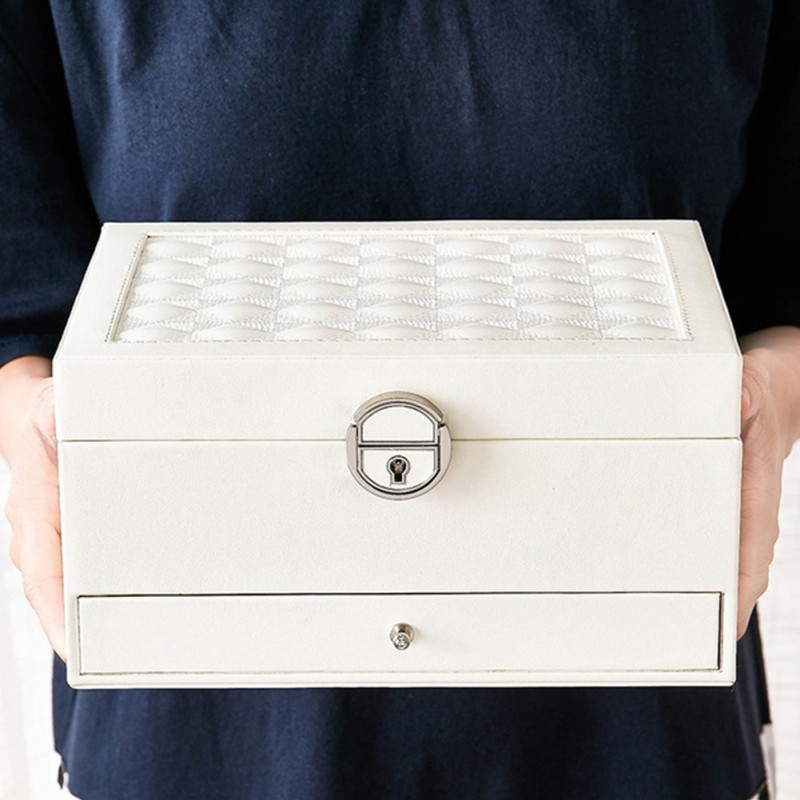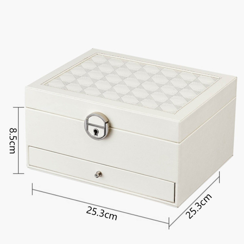 Стилна кожена кутия за бижута с 2 нива - ЦВЯТ БЯЛ - код 2755