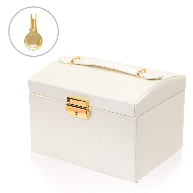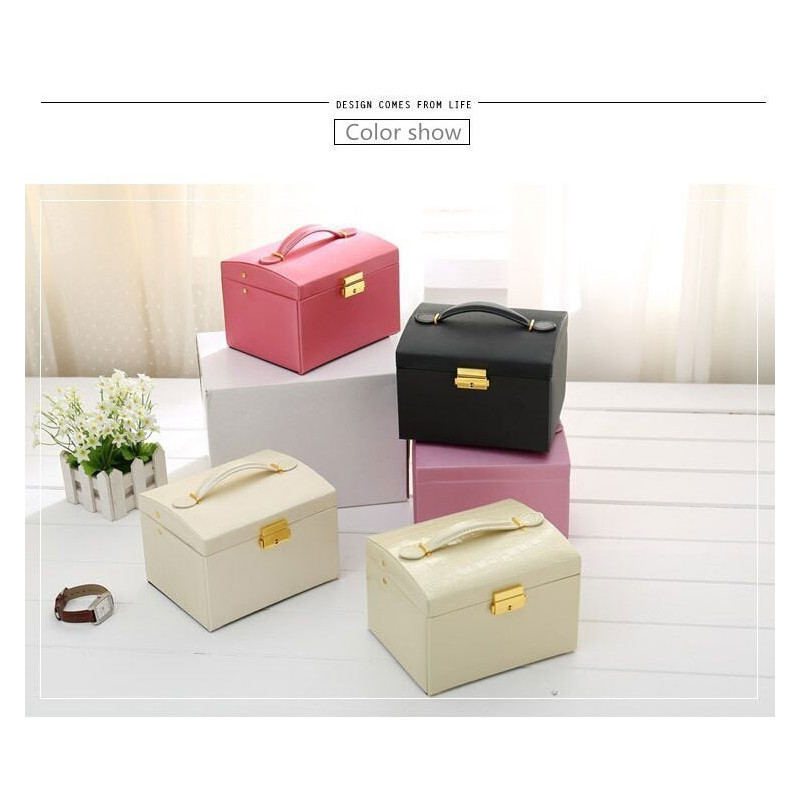 Кутията разполага с допълнително чекмедже, което е разделено на удобни секции, за да можете да съхранявате вашия часовник, гривни, пръстени, колиета и други аксесоари на едно място. Капакът на кутията се заключва, за да осигури сигурност на вашите ценности. Когато отворите кутията, откривате просторно вътрешно пространство за съхранение, както и вградено огледалце на капака. Това ви дава възможност да организирате и прегледате вашите бижута и аксесоари с лекота.