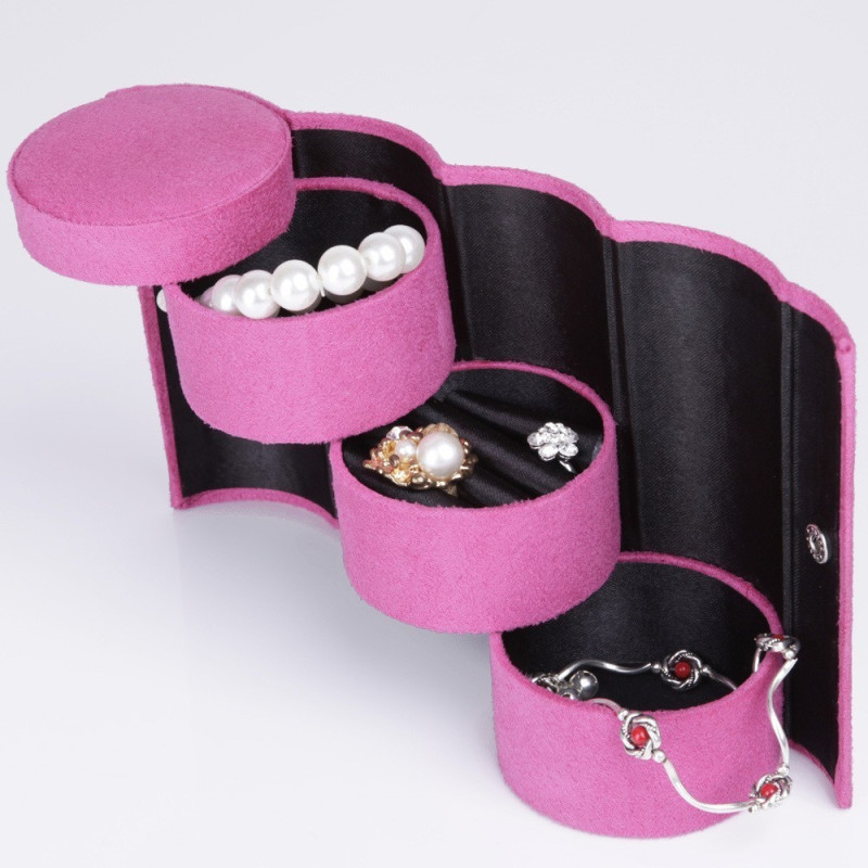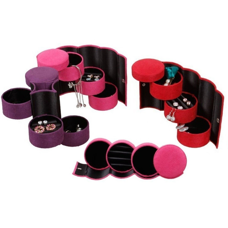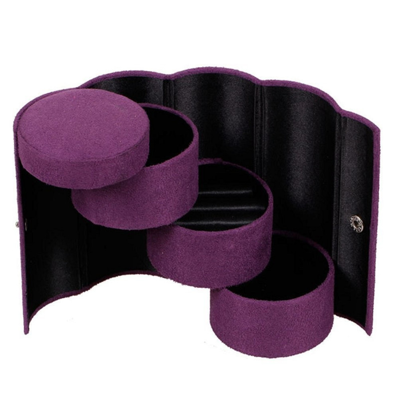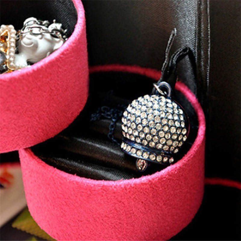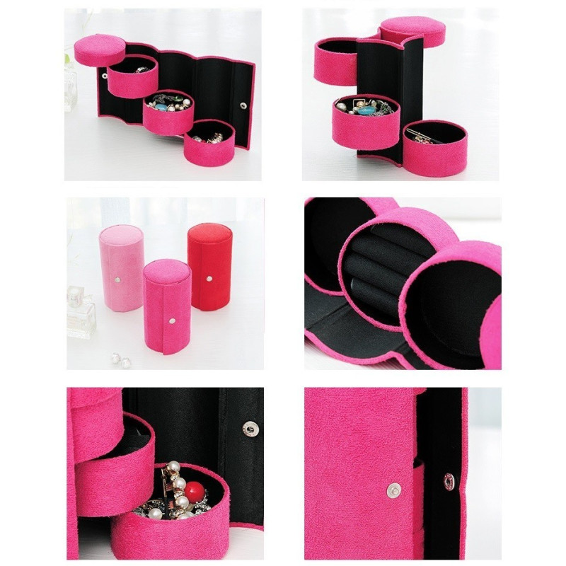 Тази стилна бижутерка с три нива е идеалното място за съхранение на вашите скъпоценни бижута. С цилиндрична форма и автоматично отваряне, тази кутия за бижута е не само практична, но и изключително елегантна.