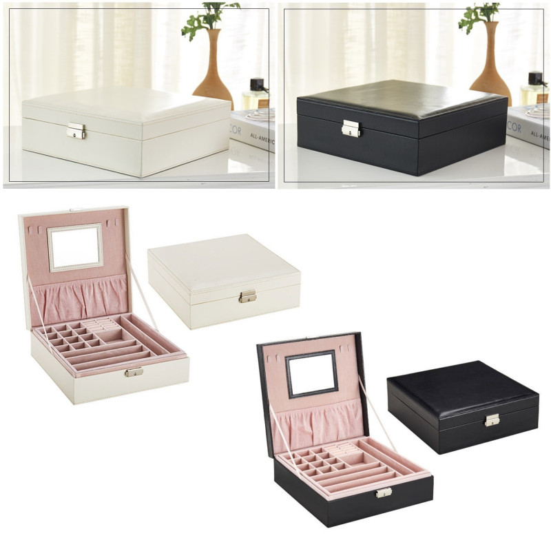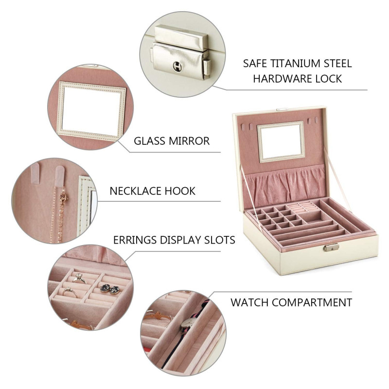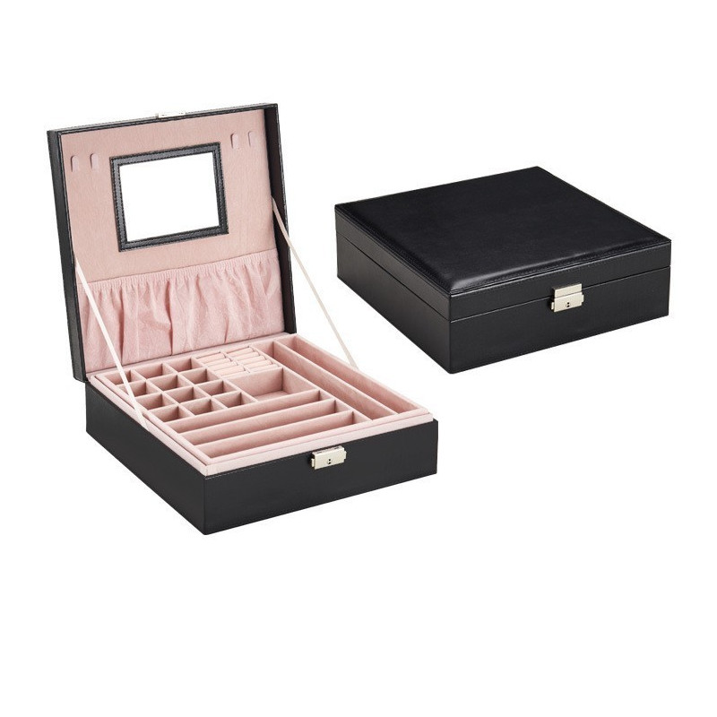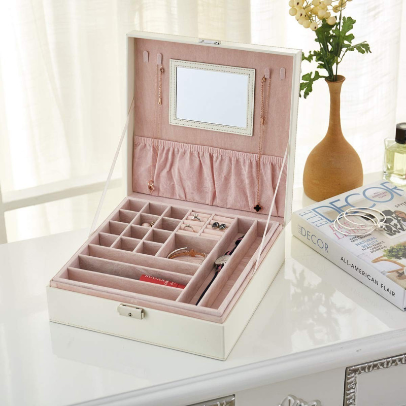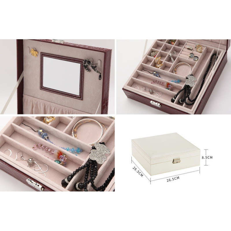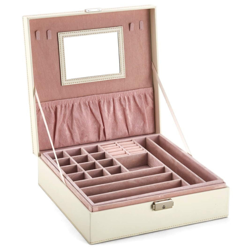 Кожена кутия за бижута и аксесоари на две нива с огледалце