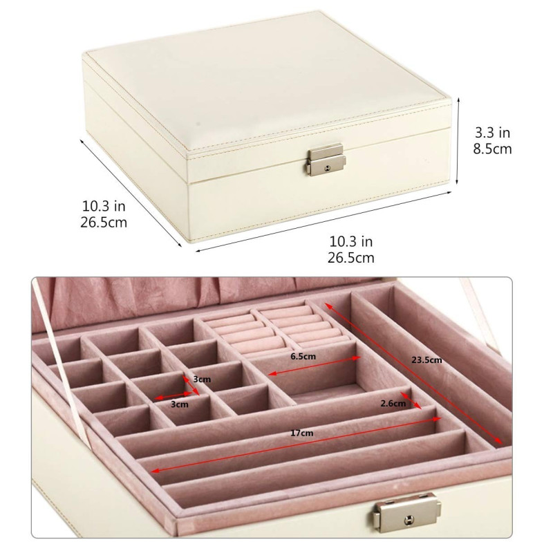 Сигурността на вашите бижута е от основно значение и затова тази кутия е оборудвана с катинар и ключ. Така можете да се почувствате спокойни, че вашите ценности са добре предпазени. Размерите й са 26.5 * 26.5 * 8.5 см, което я прави идеална за пътувания. Вземете я със себе си, когато сте на отсъствие и бъдете сигурни, че вашите бижута са в безопасност.