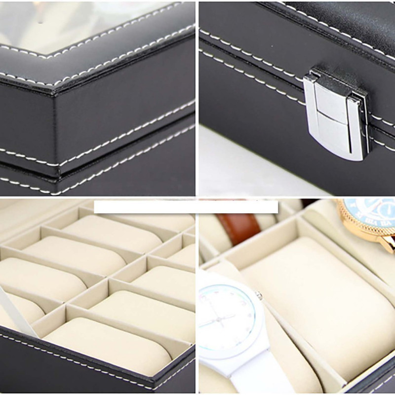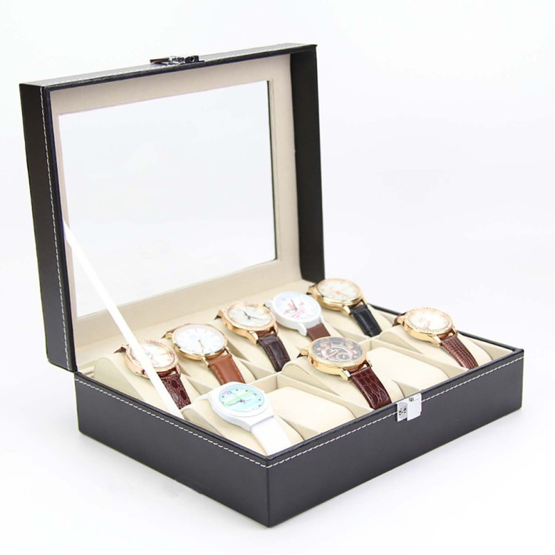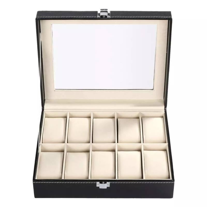 Кутията разполага с 10 отделения, всяко със своята възглавничка, предоставяйки ви възможността да съхранявате и организирате до 10 часовника или гривни. Безопасното затваряне с ключалка гарантира, че вашите ценности ще бъдат защитени и сигурни.