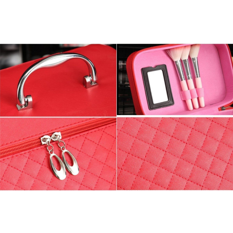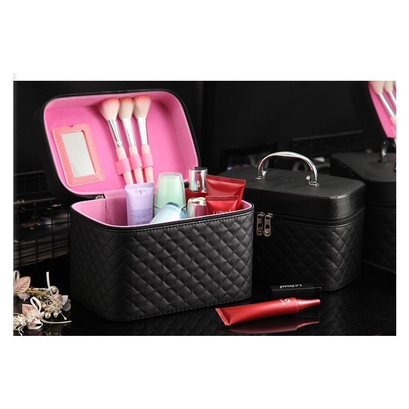 Стилният дизайн на куфарчето включва голямо основно отделение, което предоставя достатъчно пространство за съхранение на всичките ви любими козметични продукти. Допълнителното дълбоко рафтче е идеално за съхранение на дребни аксесоари като четки, червила и други.