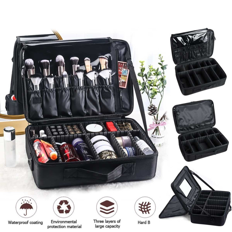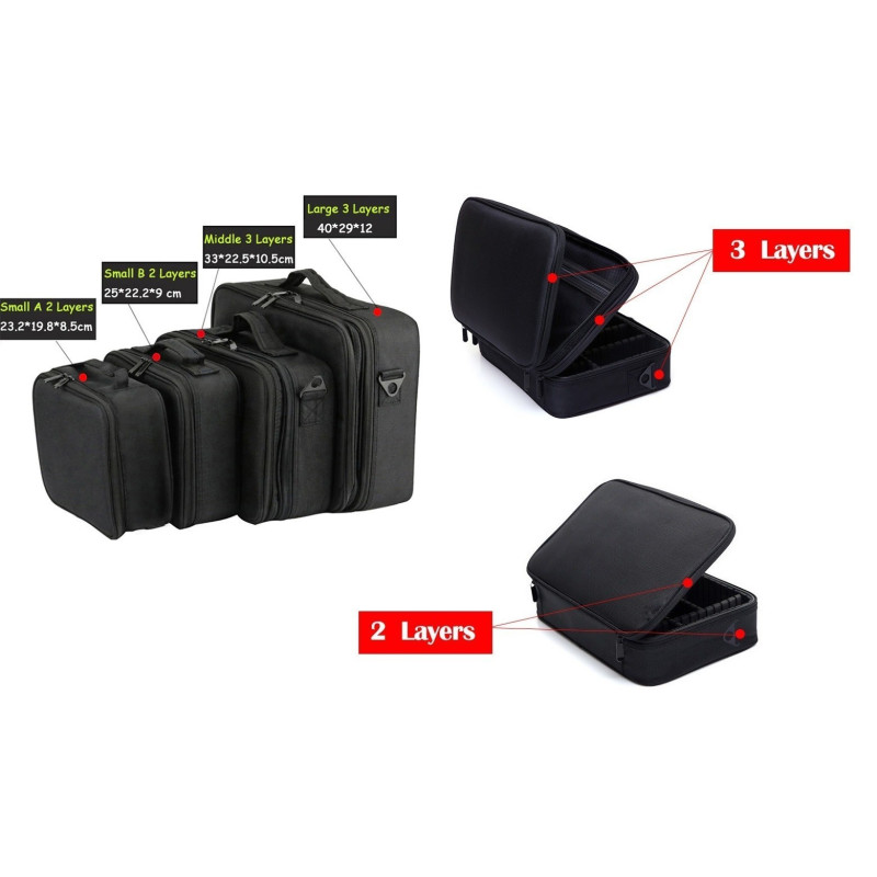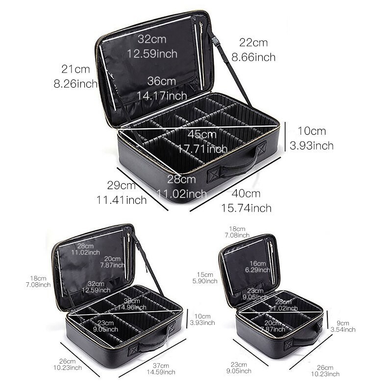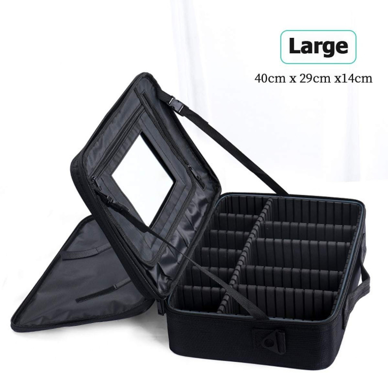 С размери от 40/29/14 см, този куфар-органайзер предлага достатъчно пространство за съхранение на вашия грим и козметика. Цветът на куфара е класически черен, който е идеален за всеки стил и предпочитания.