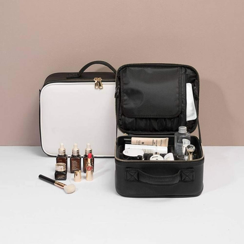 2в1 Професионален куфар-органайзер с 3 отделения за козметика е перфектният спътник за всеки, който обича да има всичко необходимо със себе си винаги и навсякъде. С изключително удобство, стил и практичност, този професионален козметичен куфар предлага персонализация и разпределение според вашите нужди.