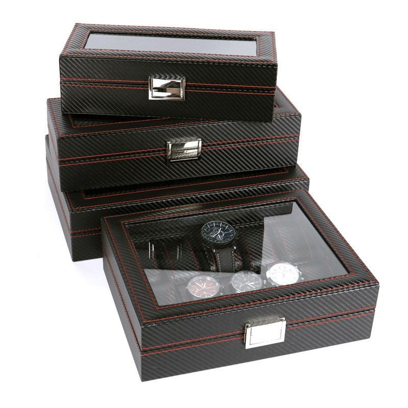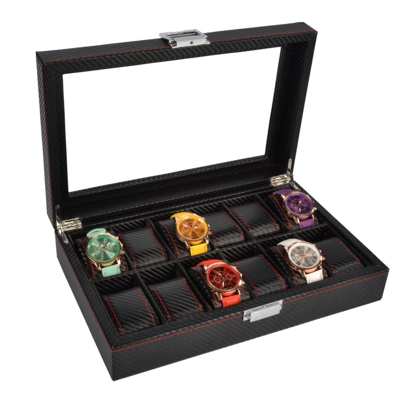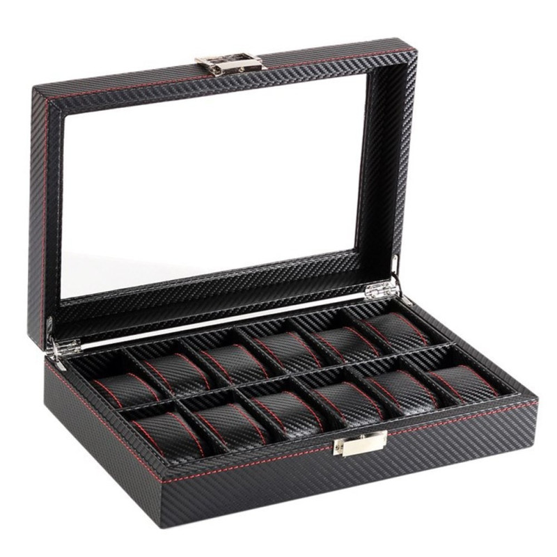 Кутия за часовници карбон с 12 отделения