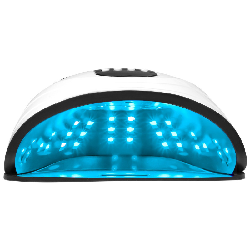 Лампата разполага с бутони за работа от 10, 30 и 60 секунди, както и с 99-секунден режим на половин мощност, който предотвратява прекомерното нагряване при изтънени нокти. Автоматичният старт при поставяне на ръката ви осигурява удобство и бързина при изпичането.