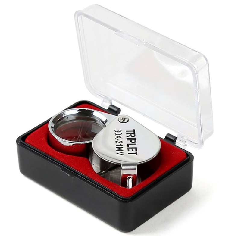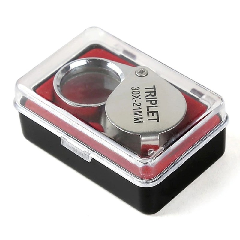 Джобна бижутерска сгъваема лупа 30 x 21 милиметра. Увеличава 30 пъти.