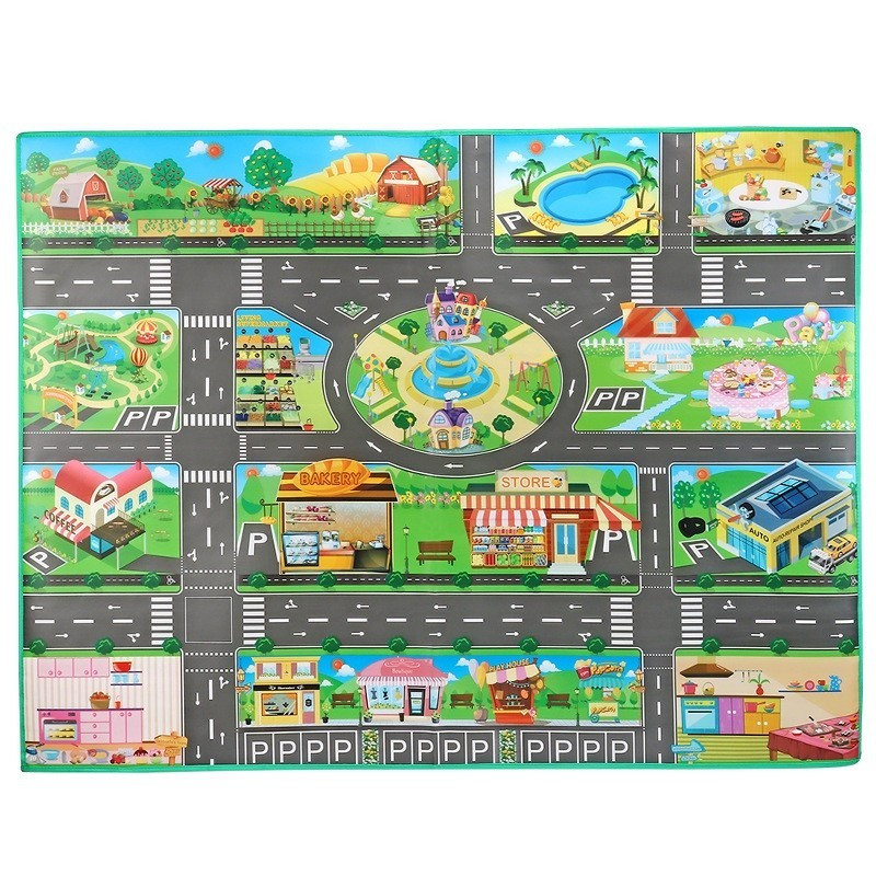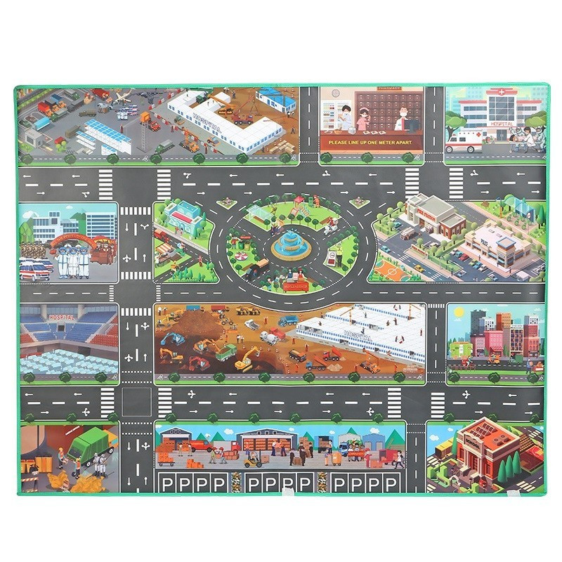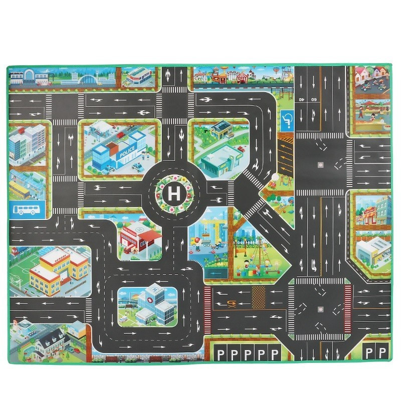 Налично в 9 модела, това детско килимче е перфектен подарък за всяко дете. Позволете на вашето дете да създаде своя собствена уникална история с това водоустойчиво килимче за игра с писта. Осигурете им забавление и безкрайни часове на игра с този прекрасен продукт.