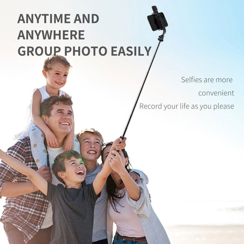 Триподът е компактен и сгънат вида, като разгъването му е необходимо само когато искате да закрепите селфи стика стабилно върху повърхност. Вие можете да контролирате дължината на стика от 19 до 105 см, за да получите най-добрите кадри.