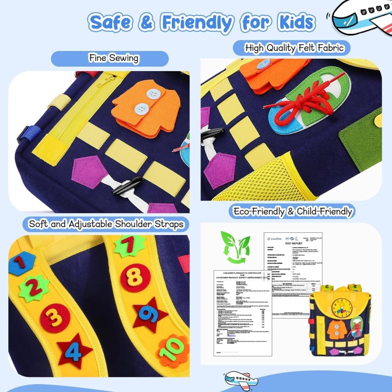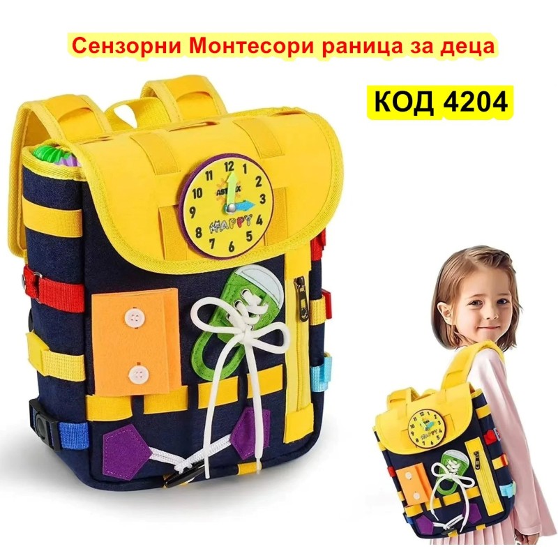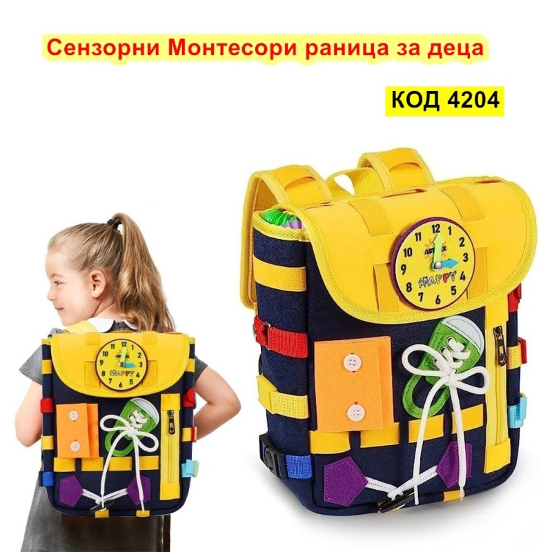 Монтесори раница за деца 2-6 години, с катарами и ципове, сензорна играчка