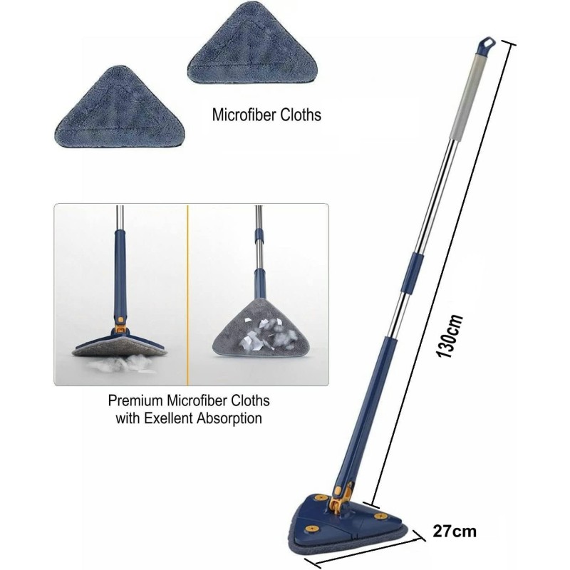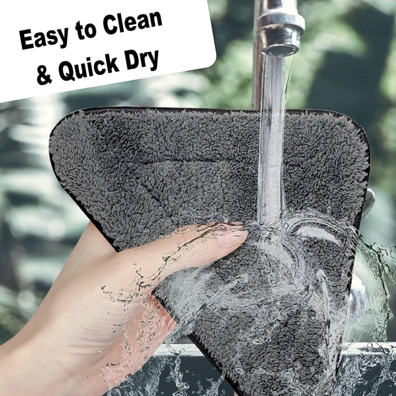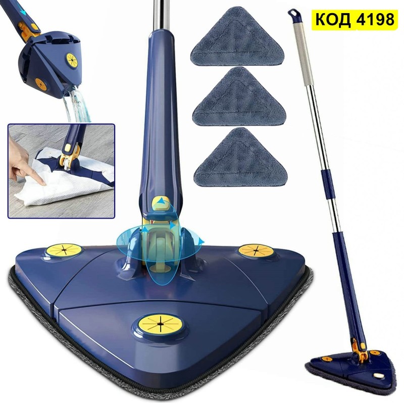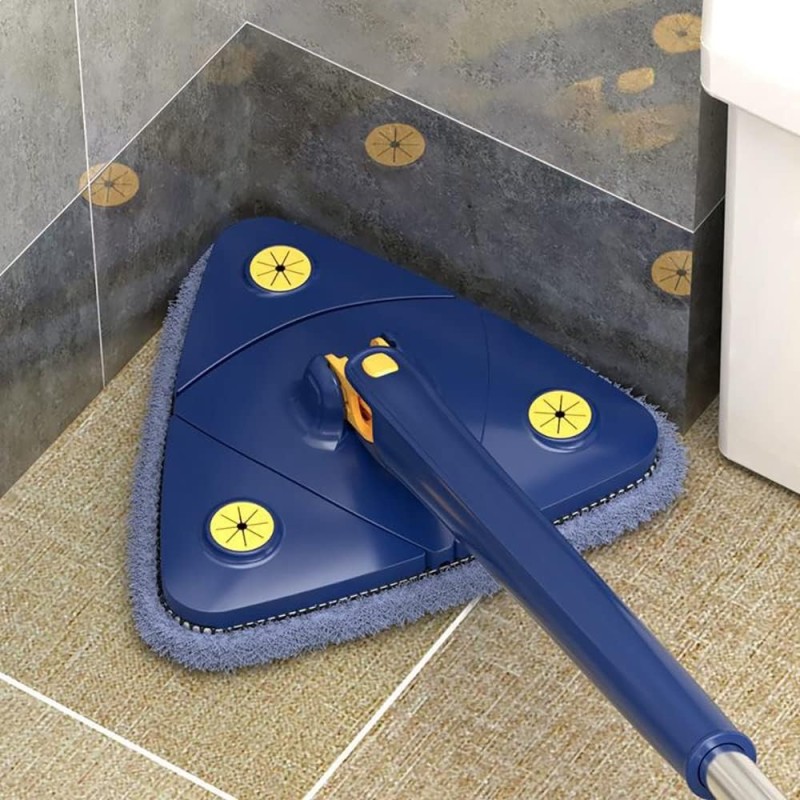 Гъвкавият почистващ моп триъгълен, позволява достъп до всеки замърсен ъгъл със своето въртене на 360 градуса и е подходящ за почистване на повърхности като дървени подове, плочки, прозорци и стени. Микрофибърната кърпа осигурява добра абсорбция и качествено почистване.