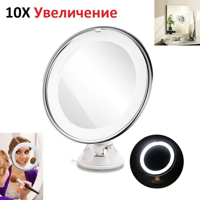 Огледало за грим с LED светлина и увеличение 10Х - захващане чрез вакуум