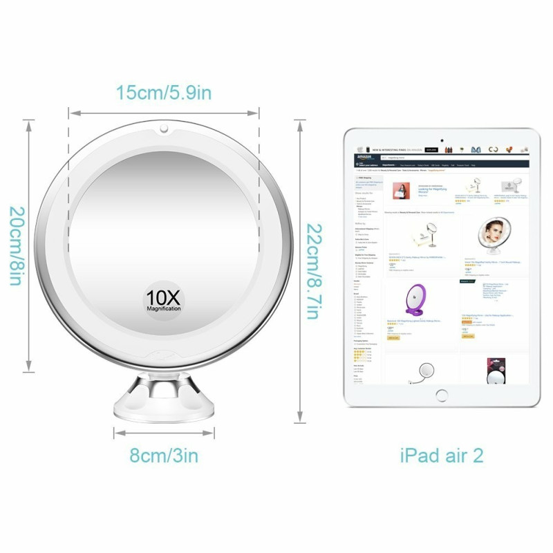 Огледалото има диаметър 7 см и размери 17.4 х 17.4 х 19.8 см, което го прави компактно и лесно за пренасяне. Благодарение на неговото 10-кратно увеличение, вие ще можете да видите всеки детайл от вашата визия.