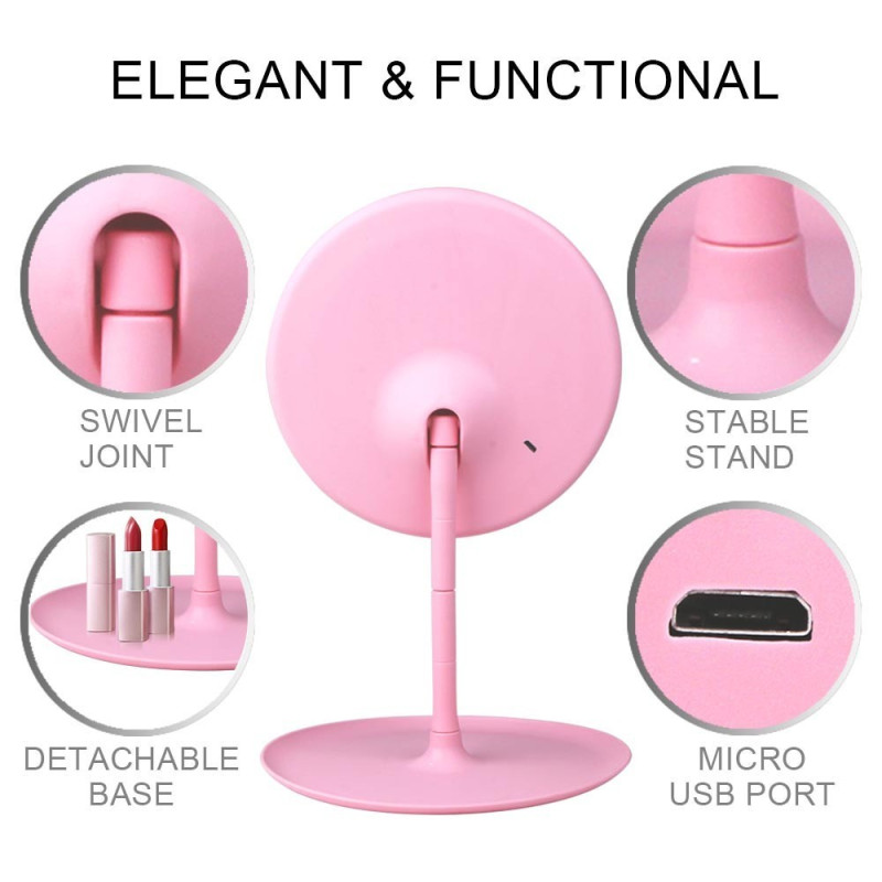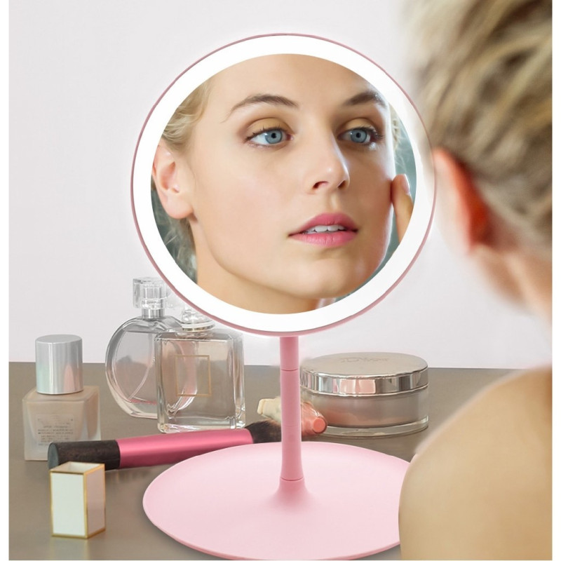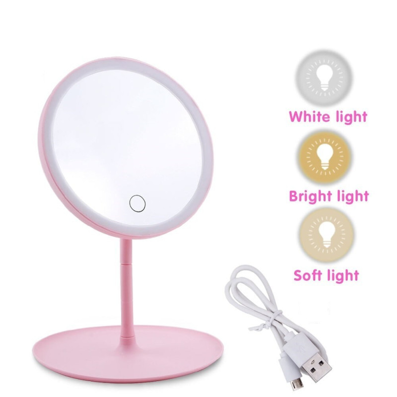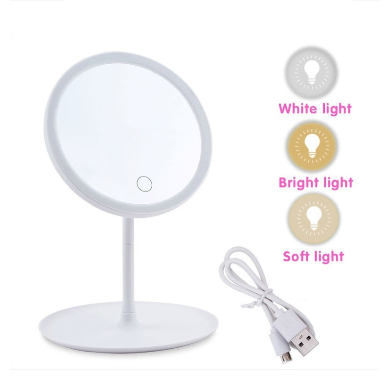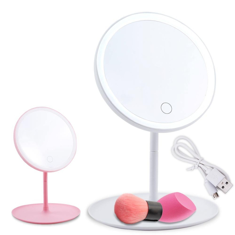 Настолно кръгло огледало с 3 режима на светене и акумулаторна батерия с USB зареждане