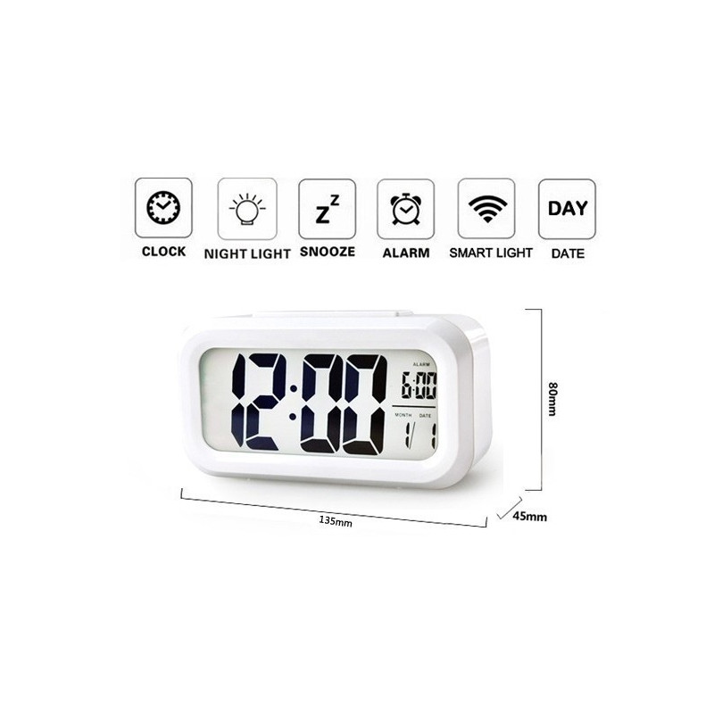 С размери от 13.5х7.5х4.5см., часовникът е компактен и удобен за поставяне върху маса, бюро или нощно шкафче. Цветовите варианти в черно и бяло са перфектно съчетание с всяко интериорно решение.
