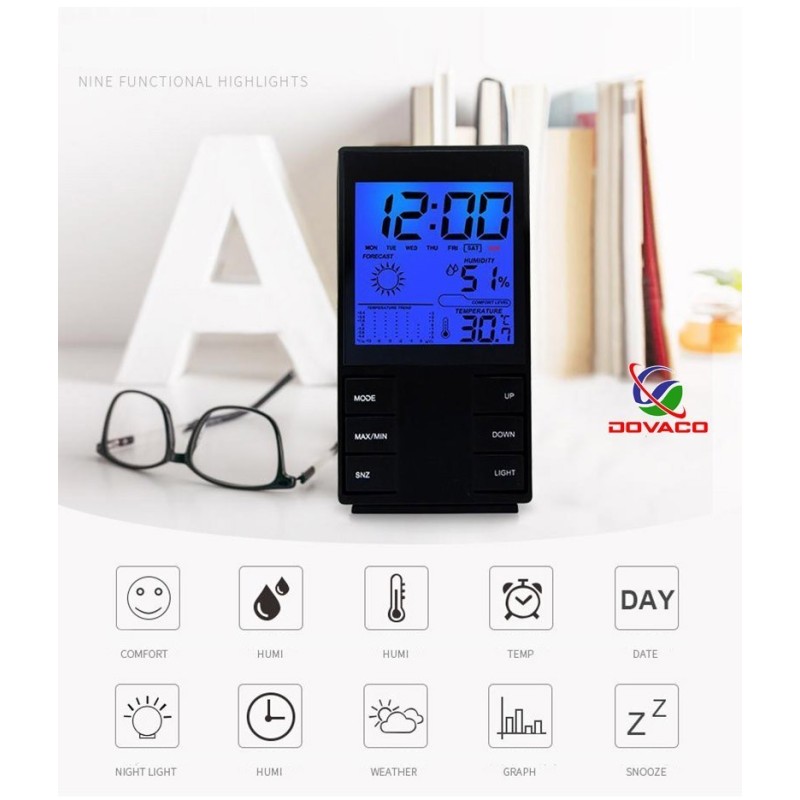 Електронен термометър, дигитален часовник, влагомер, метеостанция с аларма