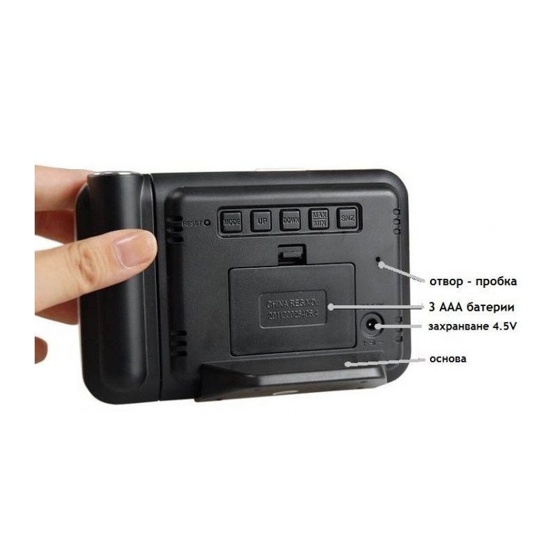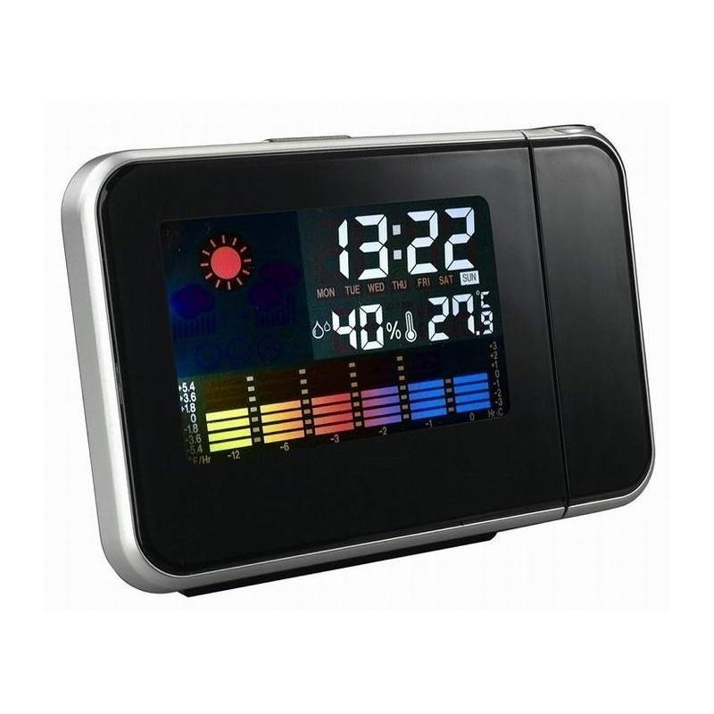 Освен проектора, този часовник разполага и с други полезни функции. Будилникът ще ви помогне да се събудите навреме, а влагомерът и термометърът ще ви покажат стойностите на температурата и влажността в помещението. Никога повече няма да се чудите какво време е и дали трябва да включите климатика или отоплението.